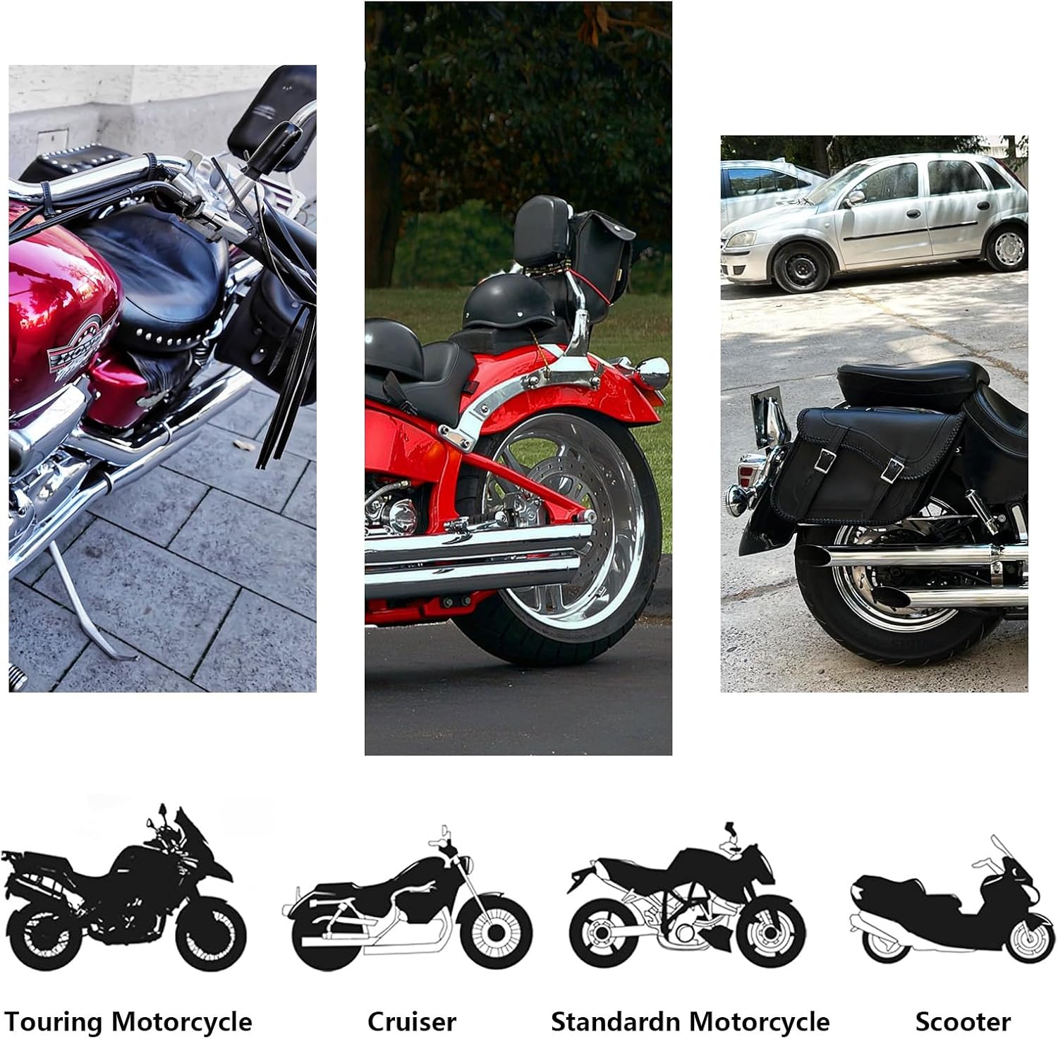 - 【Leather Material】This motorcycle saddlebags is made up of soft and durable heavy-duty PVC leather. The reinforced sewing and moderate thickness make our motorcycle saddle bag can always keep its shape and longer service life.