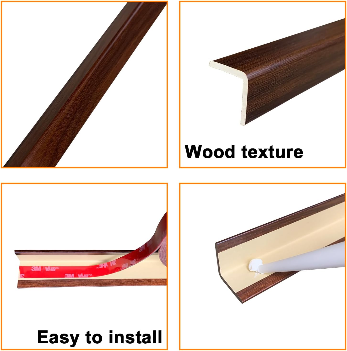 Wall Corner Protector 6PCS 45" Corner Molding Trim Walnut Wood Grain Corner Trim Decorative Strips for Door and Window Frames Mirror Edges Ceramic Tiles, and Wooden Wall Edges.