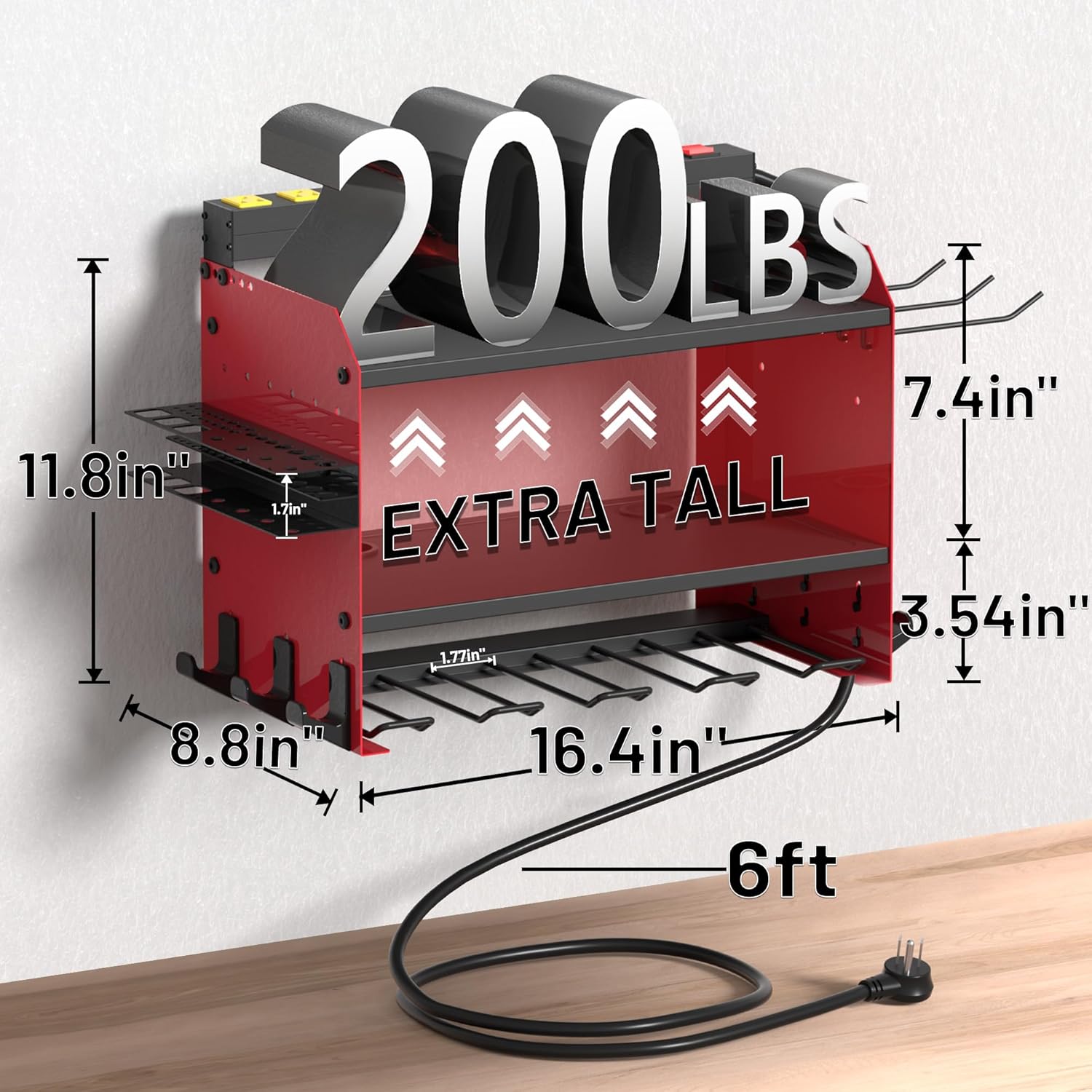 - WALL TOOL ORGANIZER:Power tool organizer wall mount utilizes free wall space to store tools,comes with charging station,4 drill holder slots and 9 hooks o keep your rechargeable tools in order,providing you with a clean and efficient workstation