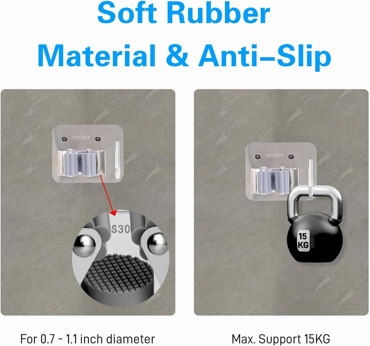 - [STURDY AND STABLE] - With a triangular structure and soft silicone rollers design, our wall mount broom and mop holder has strong grip to keep the brooms and mops from slipping, and is easily pulled free for use. It is suitable for most sizes of brooms and mops. You can install them in across multiple places, or create a dedicated cleaning station in one place.