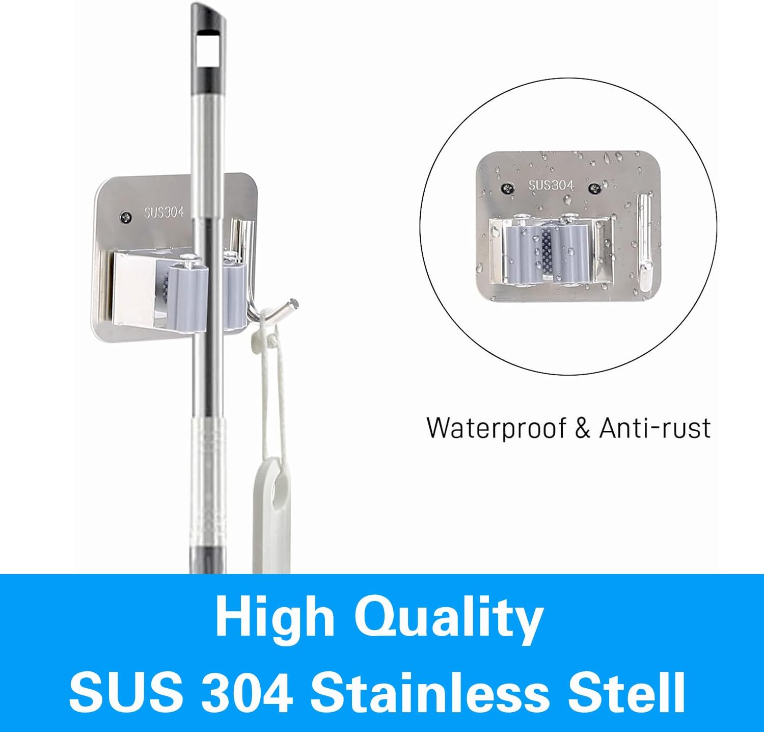 - [HIGH QUALITY MATERIAL] - Made of high quality SUS 304 stainless steel, our wall hanger for brooms and mops is waterproof and rustproof to providing a long service life. Light and sturdy enough, suitable for indoor and outdoor use. Simple and stylish appearance design also make it become a great home decor.