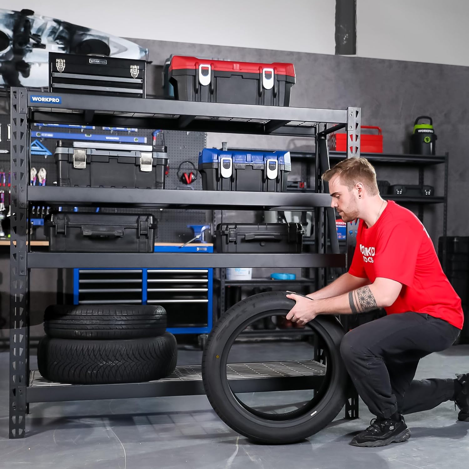 - Heavy Duty For Real - Supports up to 7200 lbs total, with each tier holding 1800 lbs. Ideal for heavy boxes, machinery, and bulk supplies in garages, warehouses, or commercial spaces.