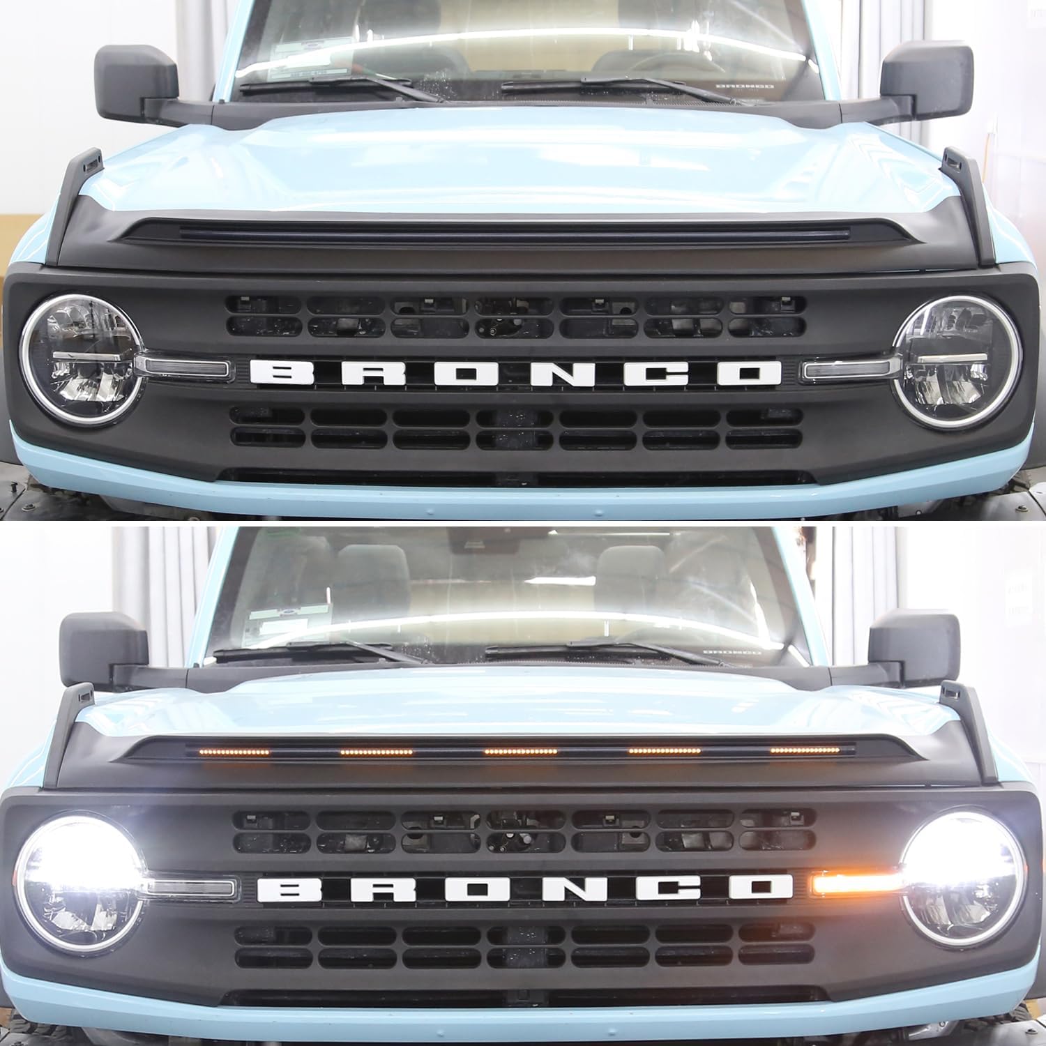 - Fitment - The bug shield hood deflector with amber light is custom designed for Ford Bronco 2024 2023 2022 2021 2 door/4 door. Not for Bronco Sport.