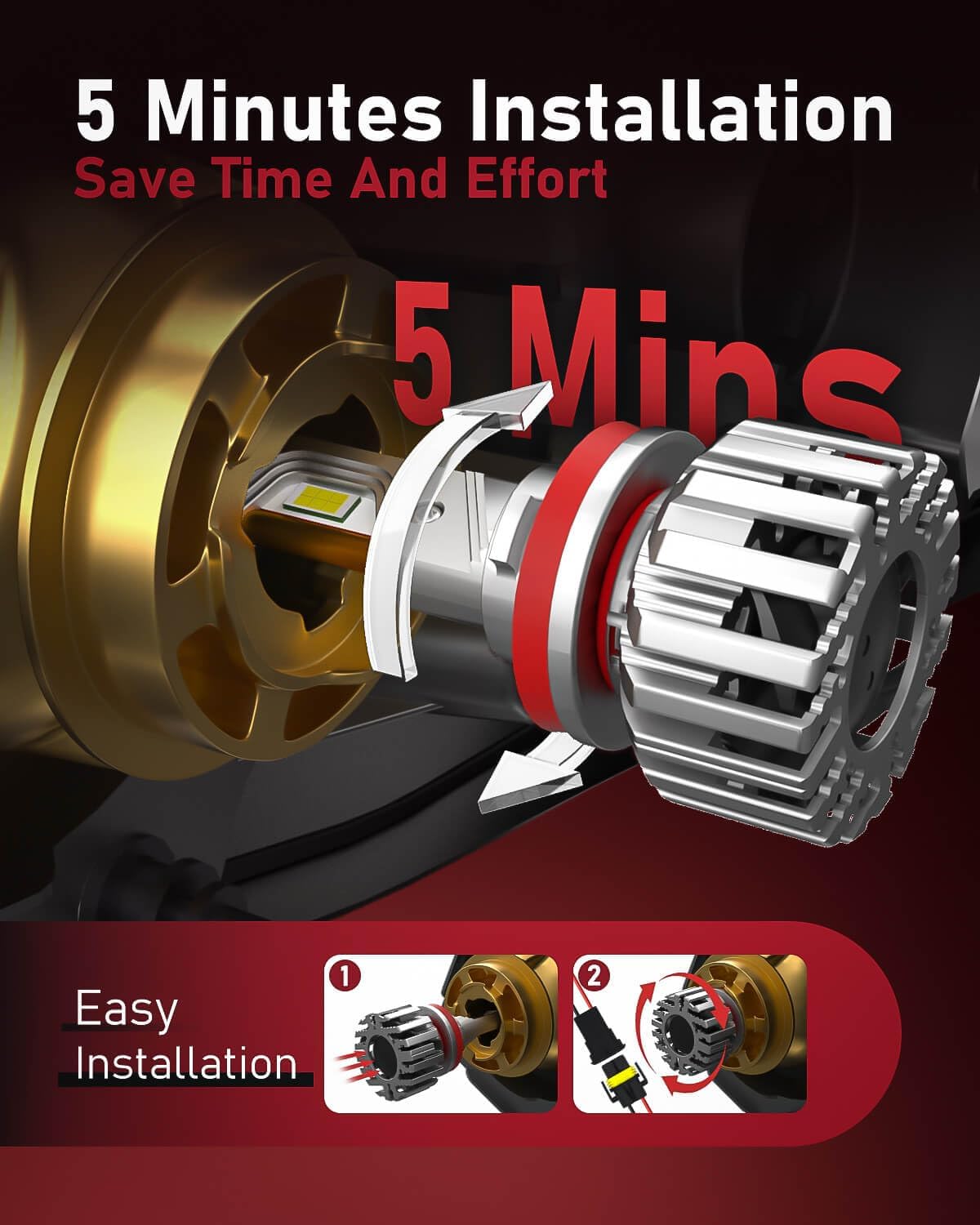 - 【+200% Extra Driving Visibility】The professional, sharp light cut-off design ensures optimal forward and side illumination, offering twice the visibility compared to traditional halogen bulbs, with superior road coverage.