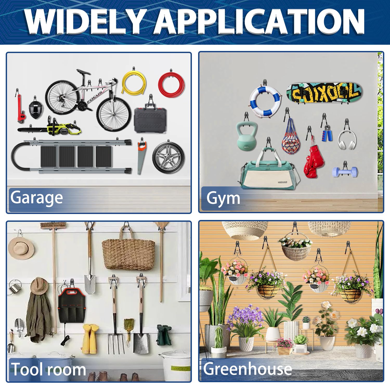 - Multi-Use Utility Hooks: The garage tool organizer wall mount can be used wherever you need, such as garage, garden, shed, yard, gym, basement, or workshop. These sturdy wall hangers heavy duty offer an excellent solution for organizing and hanging heavy items including ladders, bicycles, strollers, folding chairs, weedeaters, blowers, trimmer, shovels, ropes, hoses, and various power tools. Try our bike hangers for garage to create a neat and tidy space