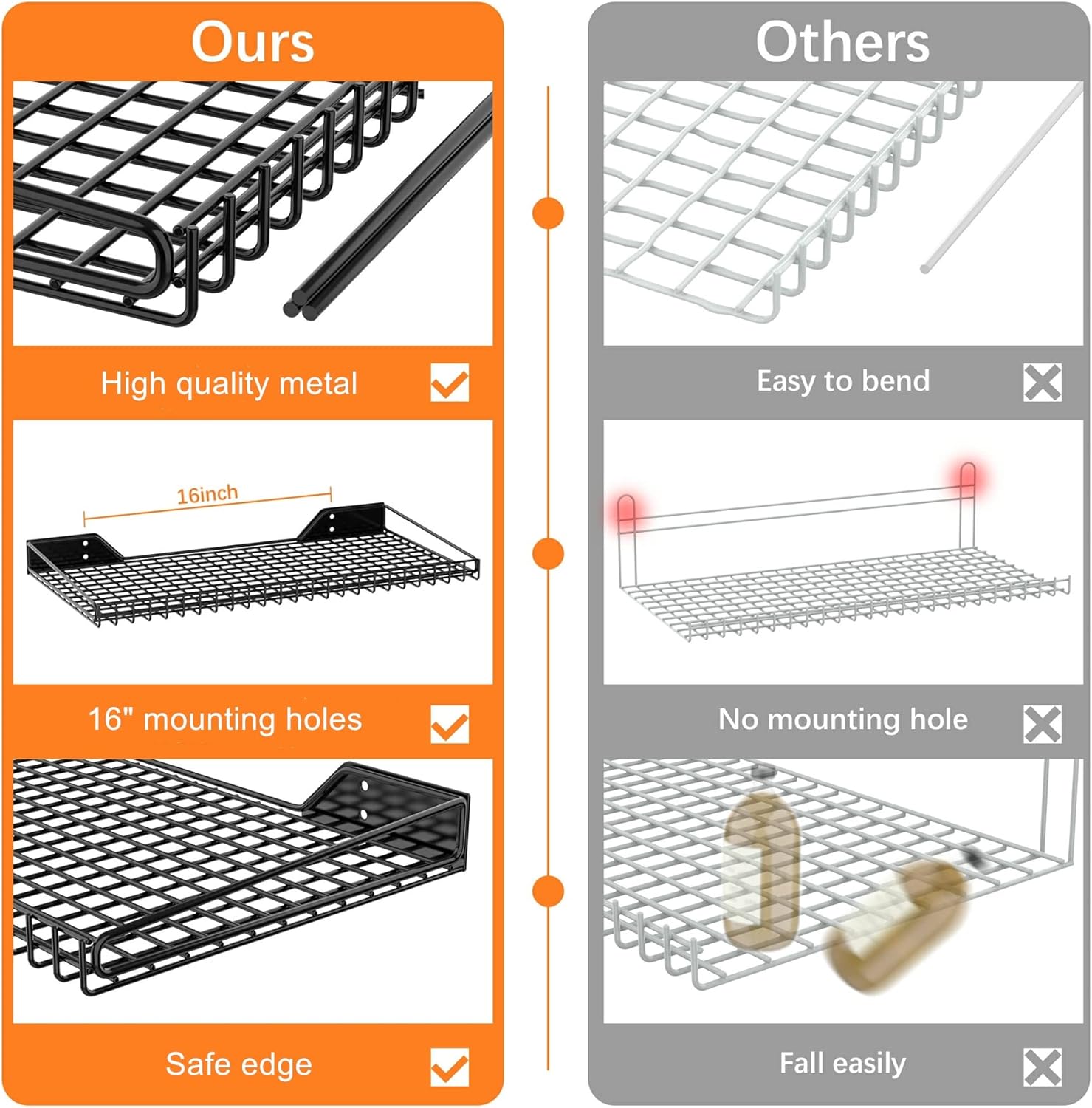 - Well Constructed: Garage wall mount shelving is made of high quality steel with powder coated finish and well constructed. Holds up to 65lbs/shelf