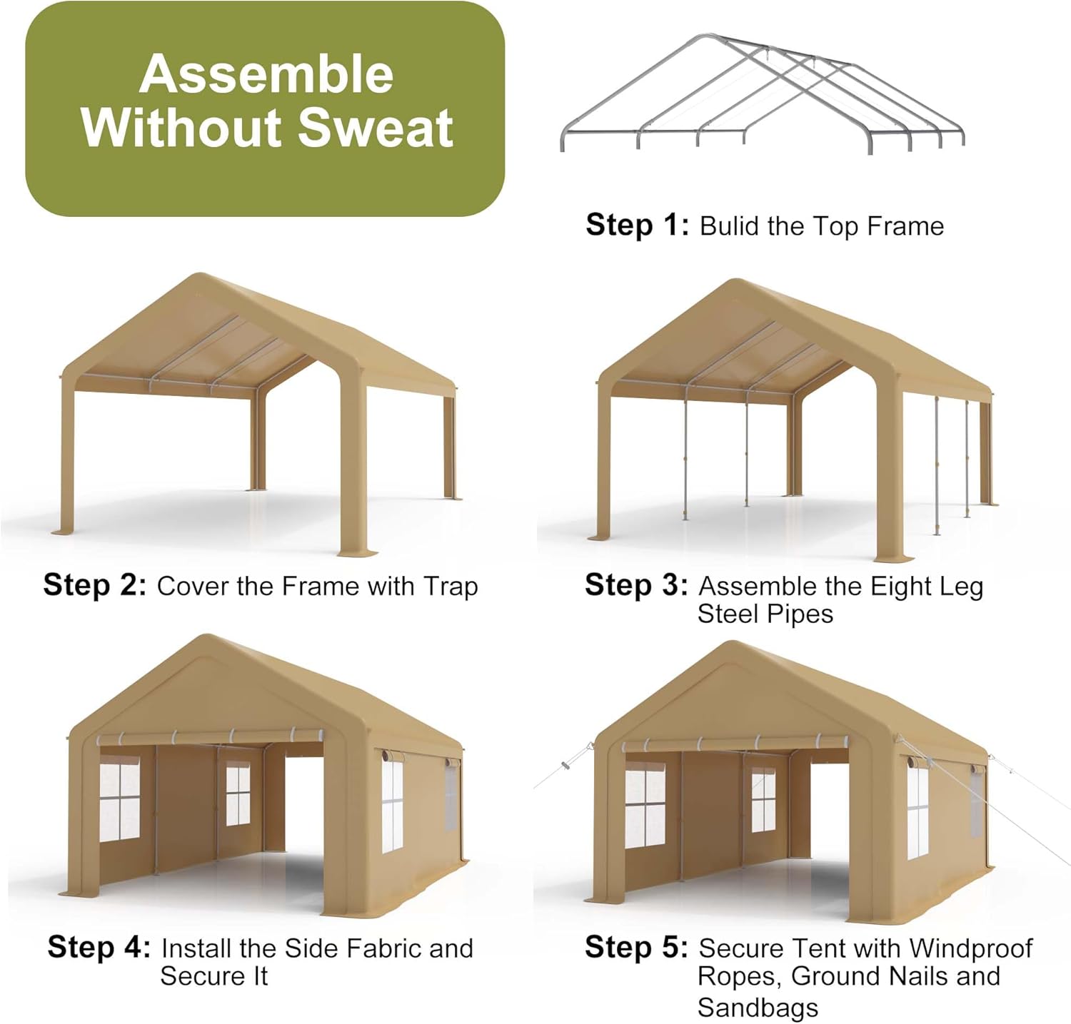 - - **Easy Assembly & Versatility**: Designed for quick and hassle-free setup, this carport is perfect for various uses, from vehicle storage to serving as a shelter for outdoor events. Enjoy the convenience and flexibility it offers.