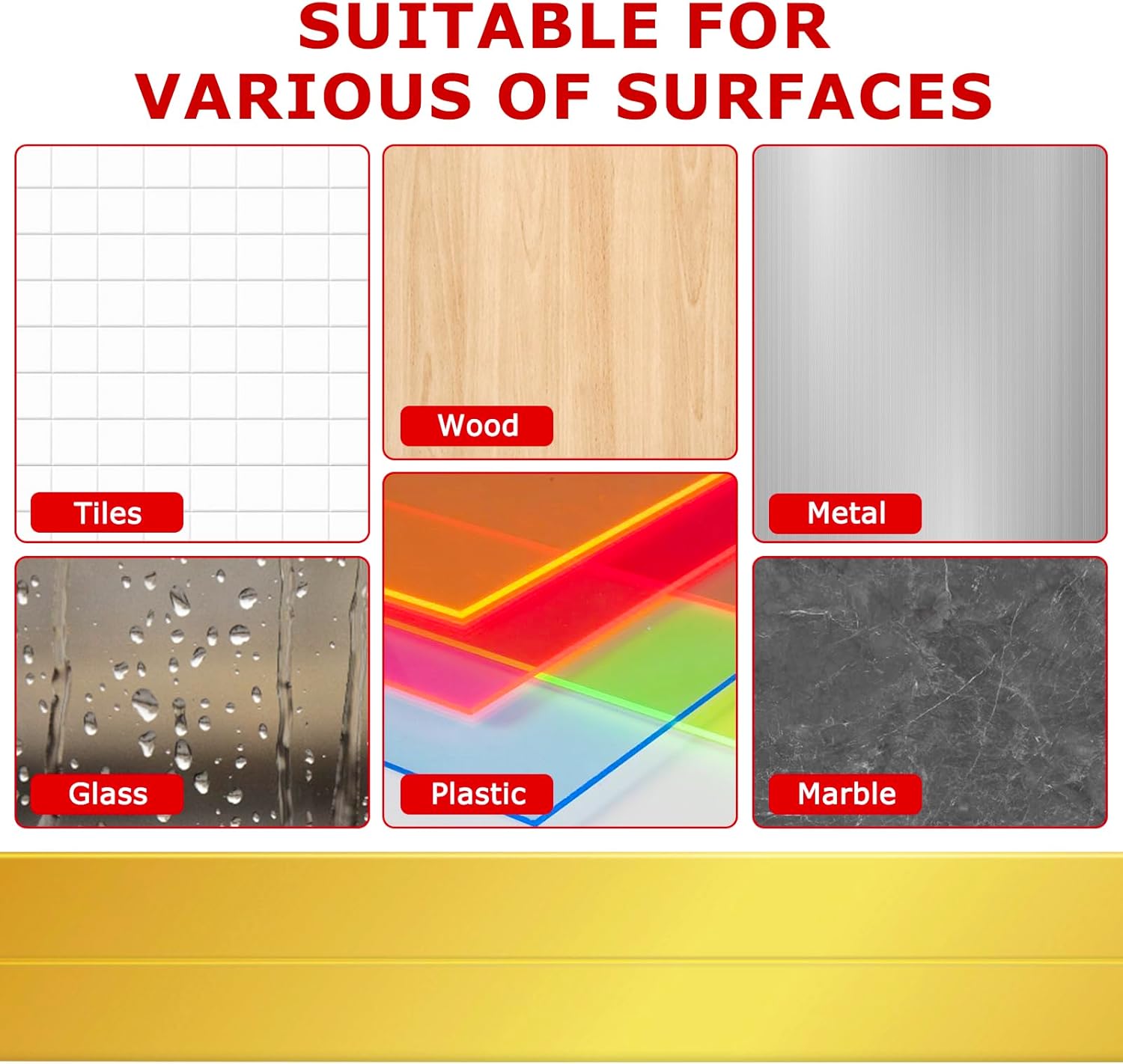 - [Multiple Application] The versatility of our corner molding trim is essential as it can adhere seamlessly to various surfaces, including tiles, plastic, marble, metal, glass, wood, and smooth walls. This makes it suitable for use in bathrooms, bedrooms, living rooms, kitchens, offices, toilets - essentially anywhere you need added protection or decorative enhancement.