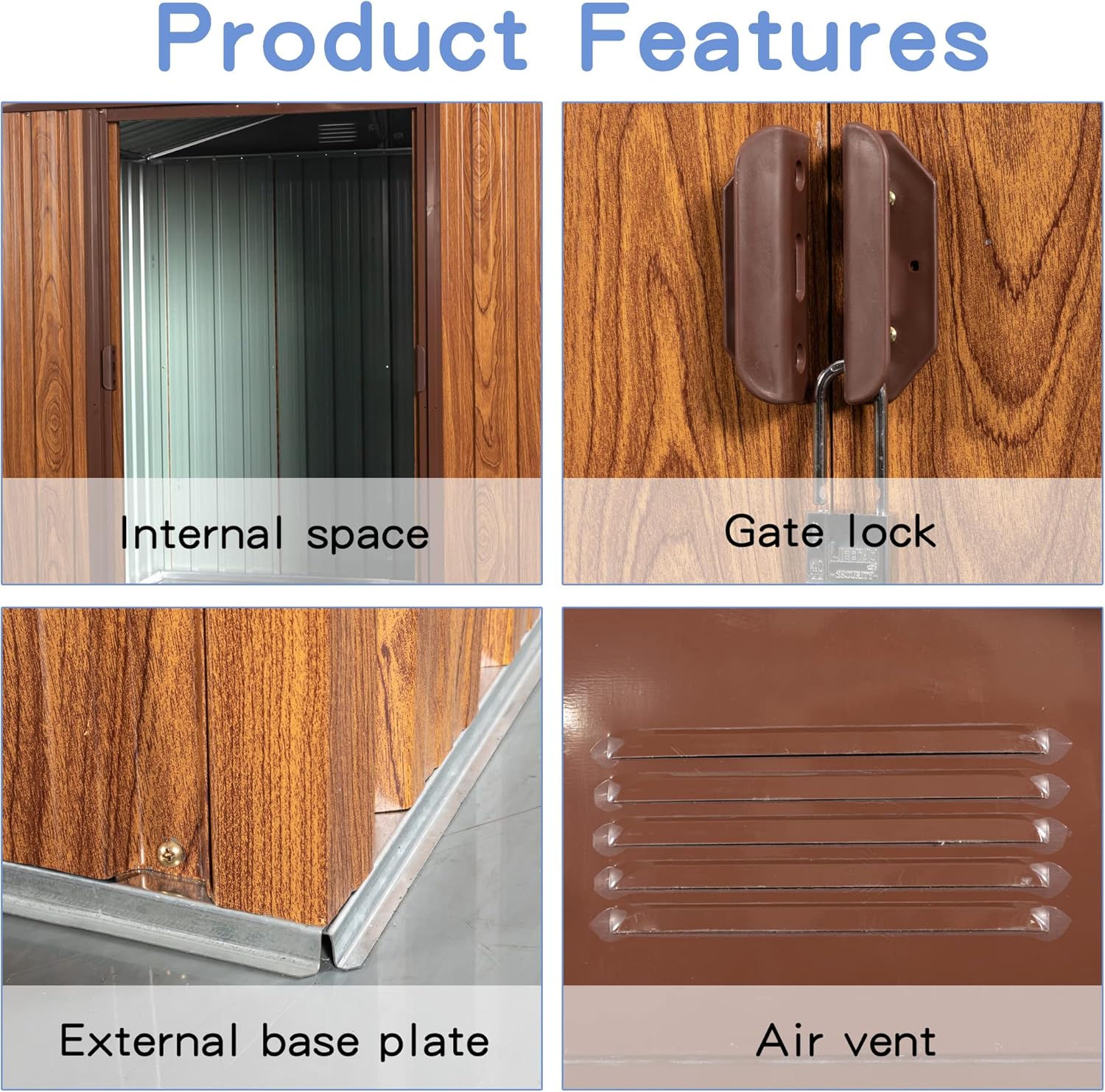 - [Punched Vents] Unlike typical sheds with plastic vents, this shed comes with four integrated punched vents which will not deteriorate against sunlight. The PC window.
