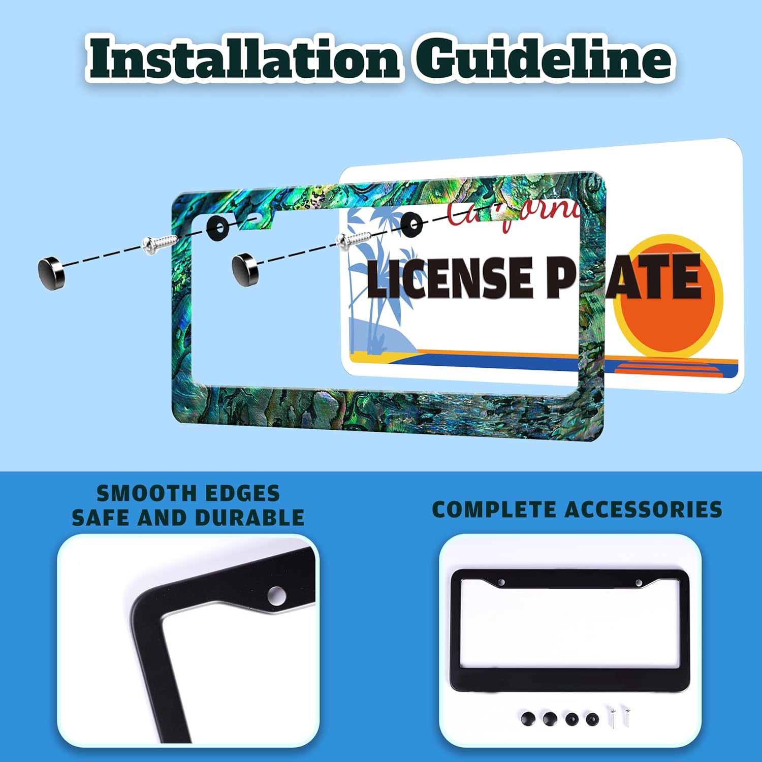 Faux Abalone License Plate Frame Funny Stainless Steel License Plate Holder for Front or Rear Car Tags for Car Decoration Accessories Rust-Proof with Screws 6.3 X 12.2 in for Women Men