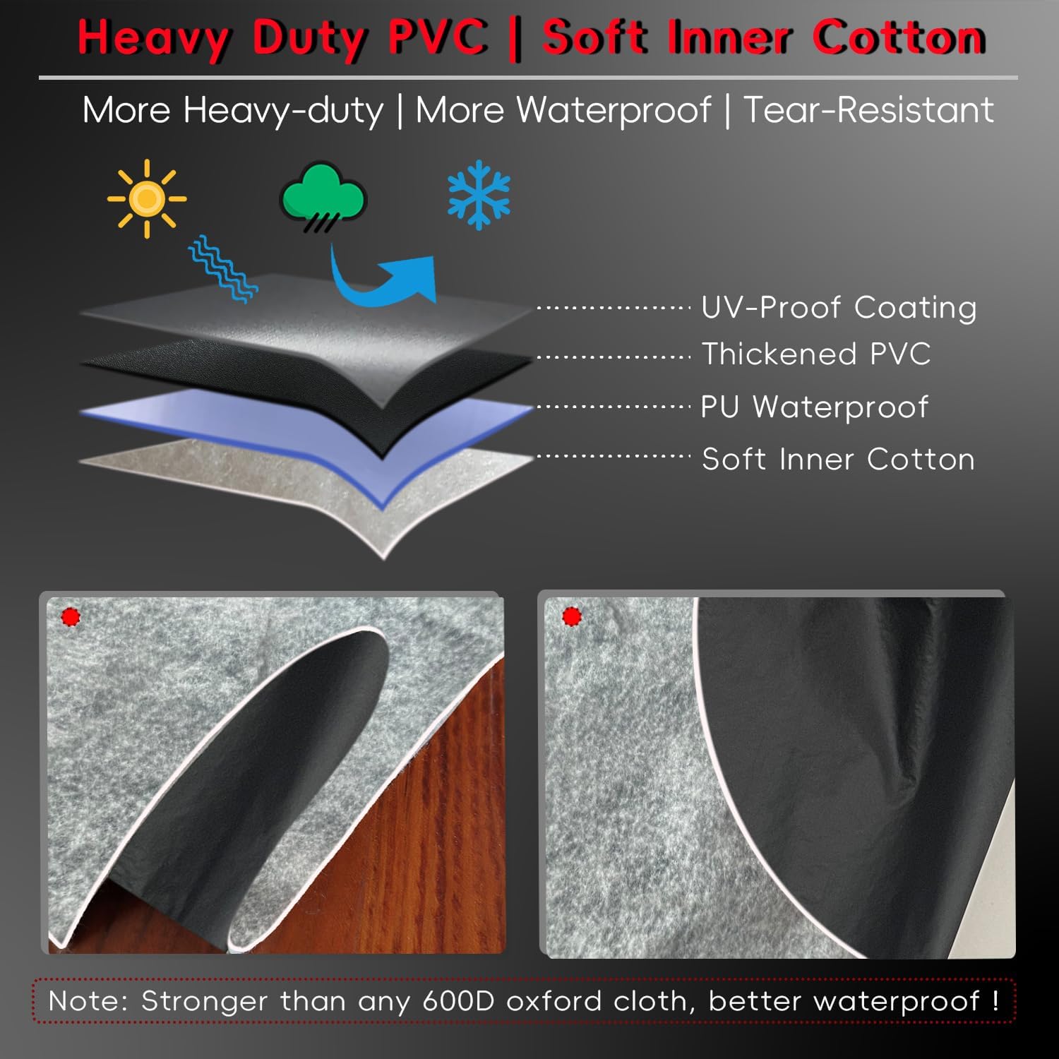 - | QUALITY MATERIAL | – Real heavy-duty cover is made of thickened PVC, with soft cotton inner, protect motorcycle paint, stronger than oxford cloth, better waterproof.