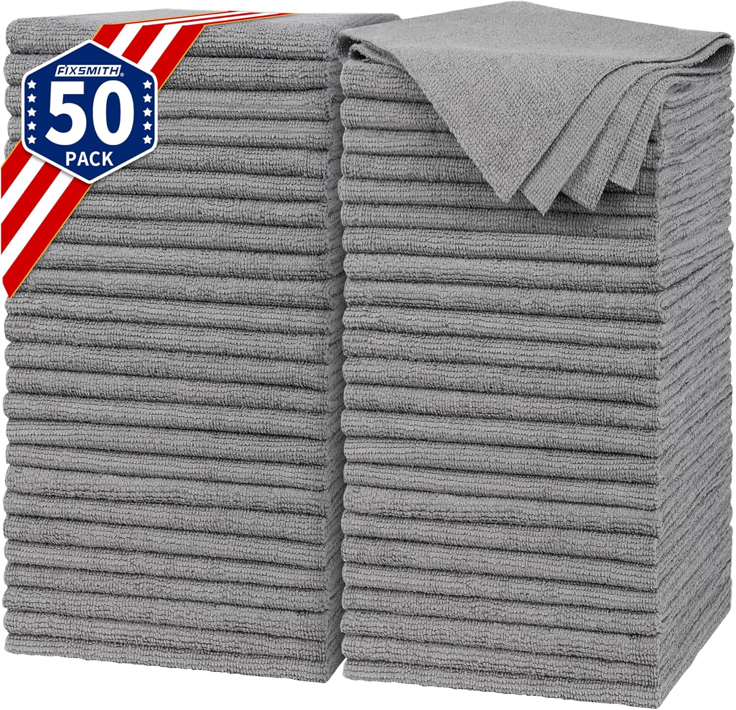 FIXSMITH Shop Towels, Pack of 50, Grey Microfiber Cleaning Cloth Bulk, Microfiber Towels for Cars, All-Purpose Absorbent Cleaning Rags, Dust Cloth for Automotive, Mechanic, Garage, 11.5 x 11.5 inch