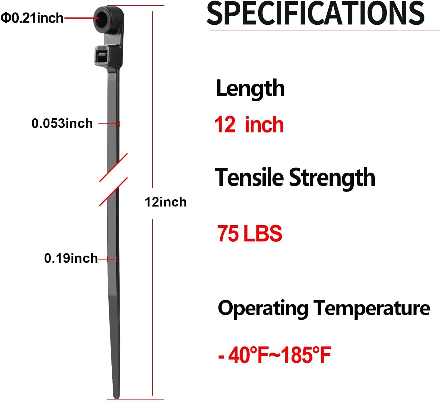 - 【High tensile strength】Pack of 200 12 Inch Long Black Cable Zip Ties. Heavy Duty Cable Ties with supporting up to 75LBS Strong Tensile Strength. 0.2inch Wide