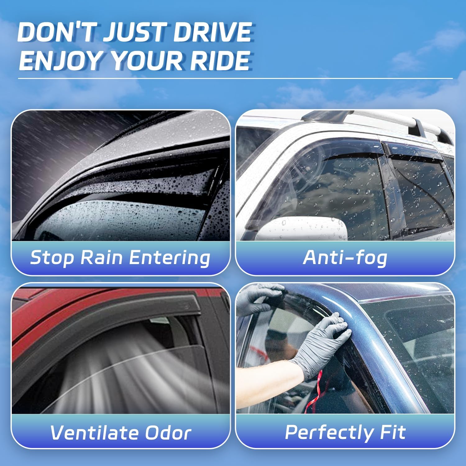 - Fully Functional: Enjoy fresh air and keep the rain drops out; reduce interior wind noise and mirror fogging; reduce sun glare through side windows; remove stale, stubborn odors; allows your vehicle to be well ventilated and reduces the need for the use of air conditioning