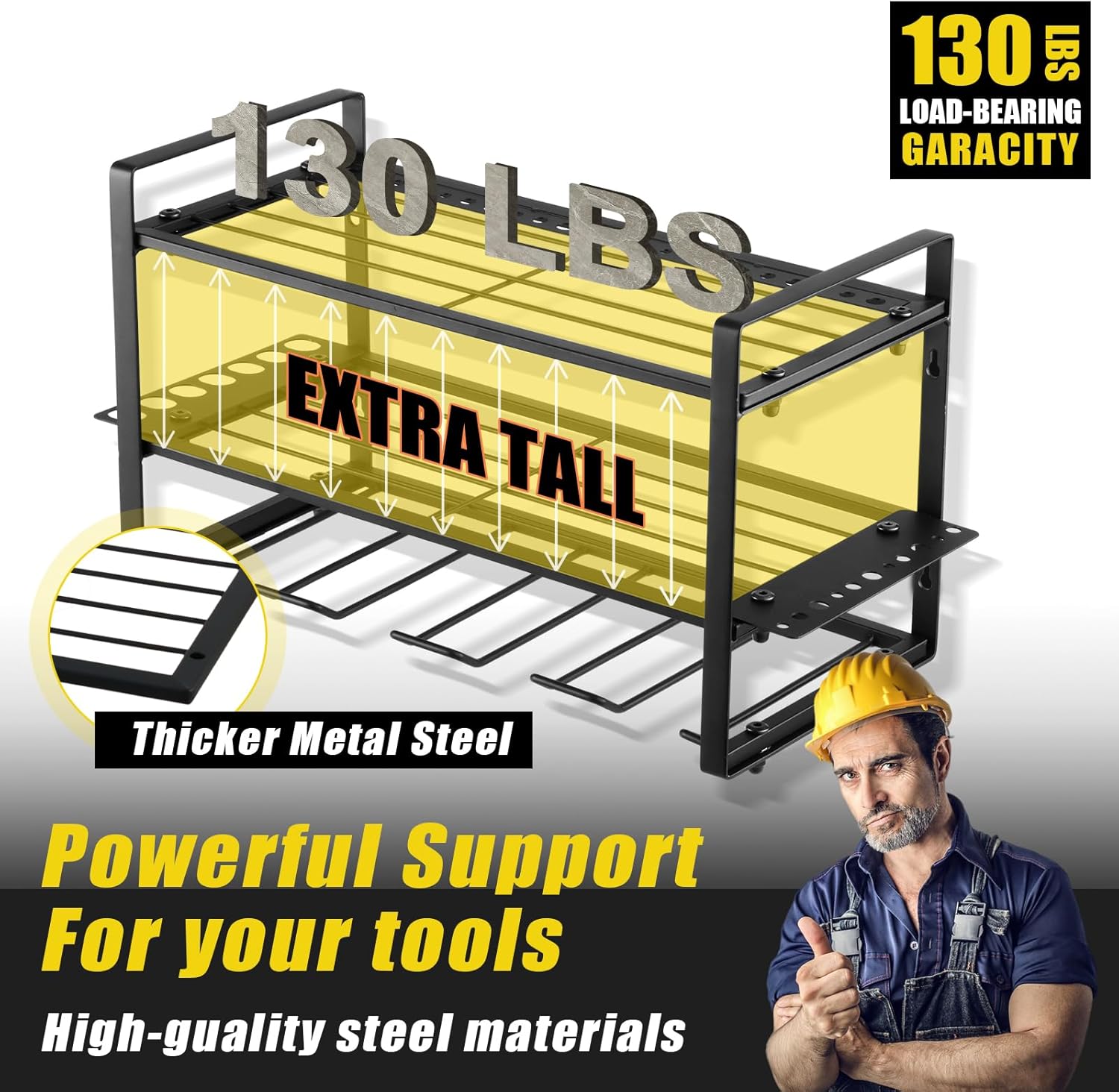 Power Tool Organizer Wall Mount, 2 Pack 3 Layers Garage Wall Shelving, 8 Drill Holder Wall Mount, Cordless Tool Organizer, Garage Storage Rack with 4 Extension Cord Holder