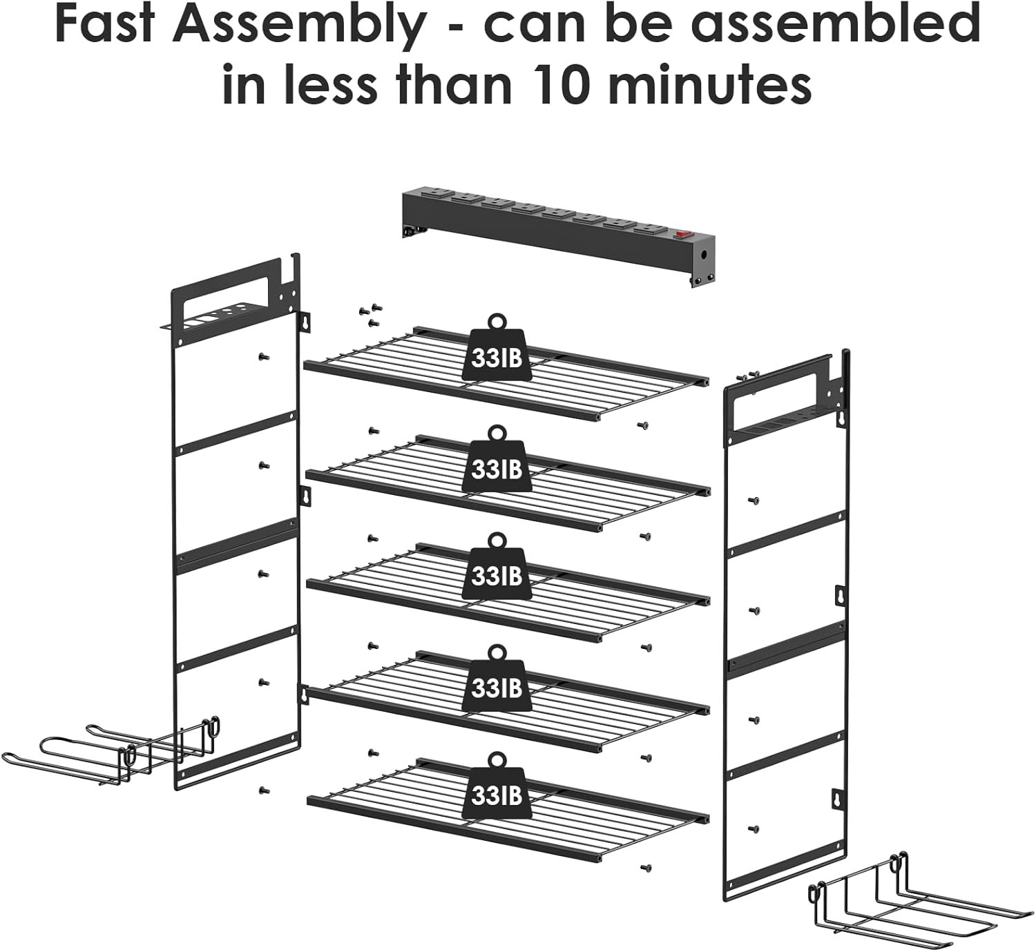 - t can quickly assembled in 20 minutes, please follow the instructions, come with all the tools needed to put it together, please test the power supply before assembly. Wall mount design, very easy to mount on the wall.