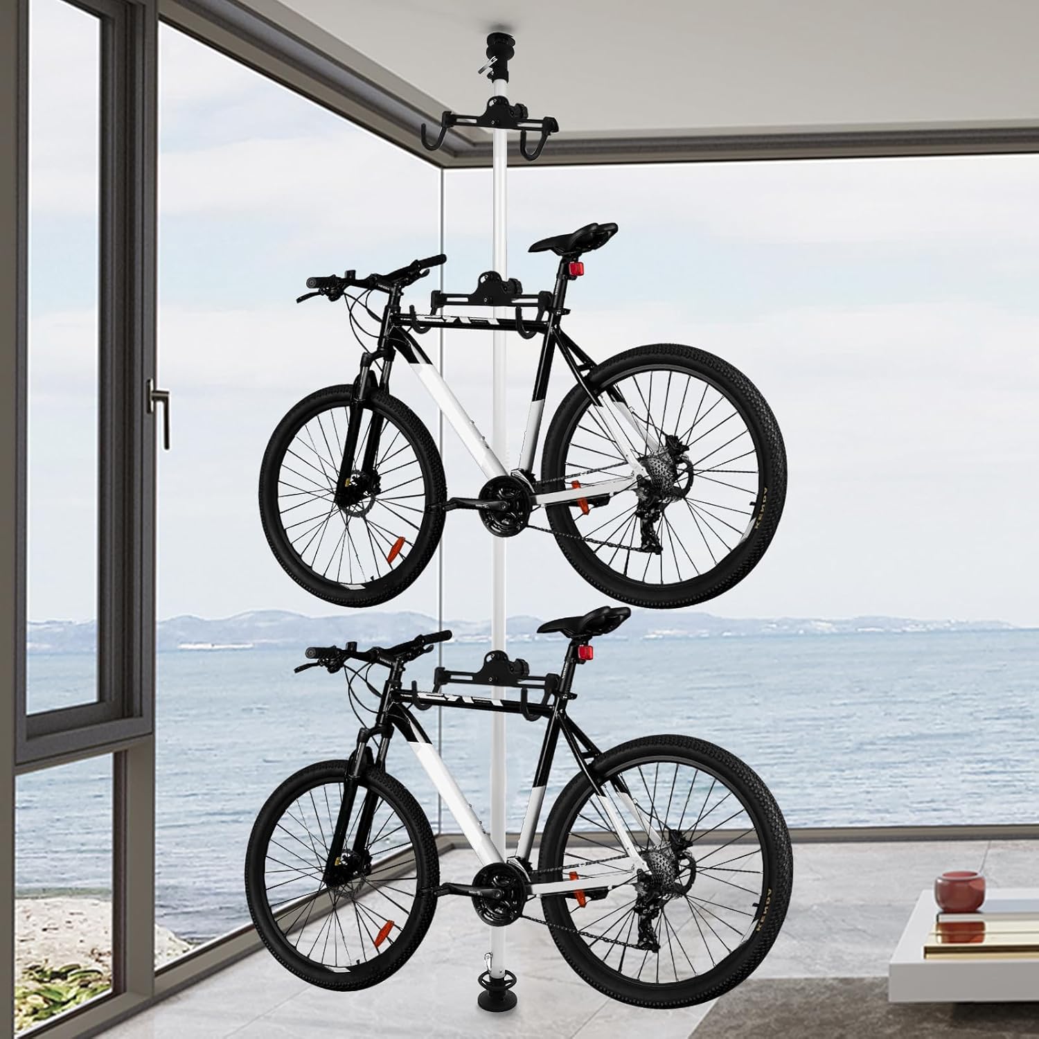 Floor to Ceiling 3 Bike Vertical Freestanding Hanger Parking Rack, Bicycle Storage Rack 360° Adjustable Hook Indoor Bike Storage Pole Stand for Storing Bicycles in Garages or Apartments