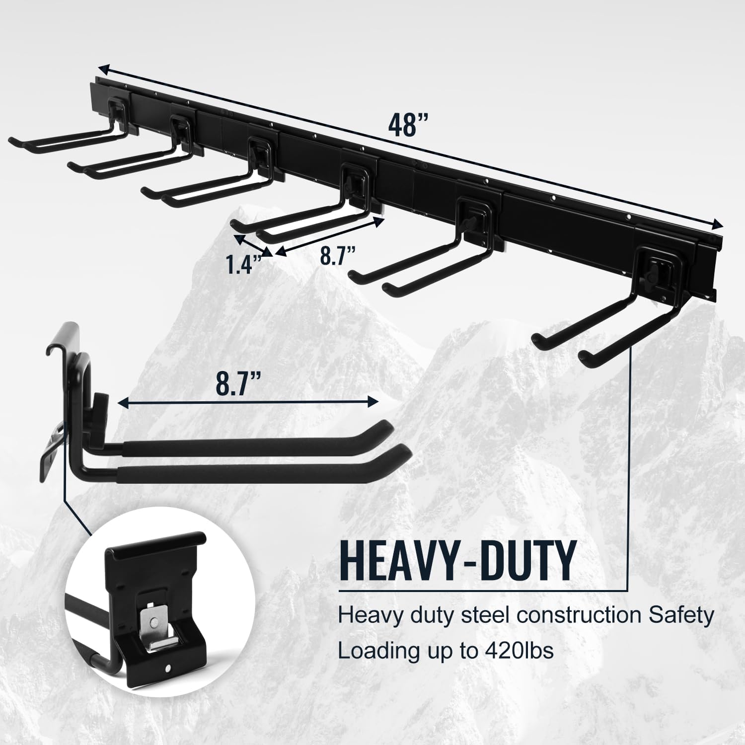 - ADJUSTABLE VERSATILE STORAGE: With a clamping screw, the hooks adjust along the wall track, accommodating various tool sizes. This garage storage system is ideal for organizing shovels, rakes, brooms, and more, making it a perfect yard tool organizer for garage.