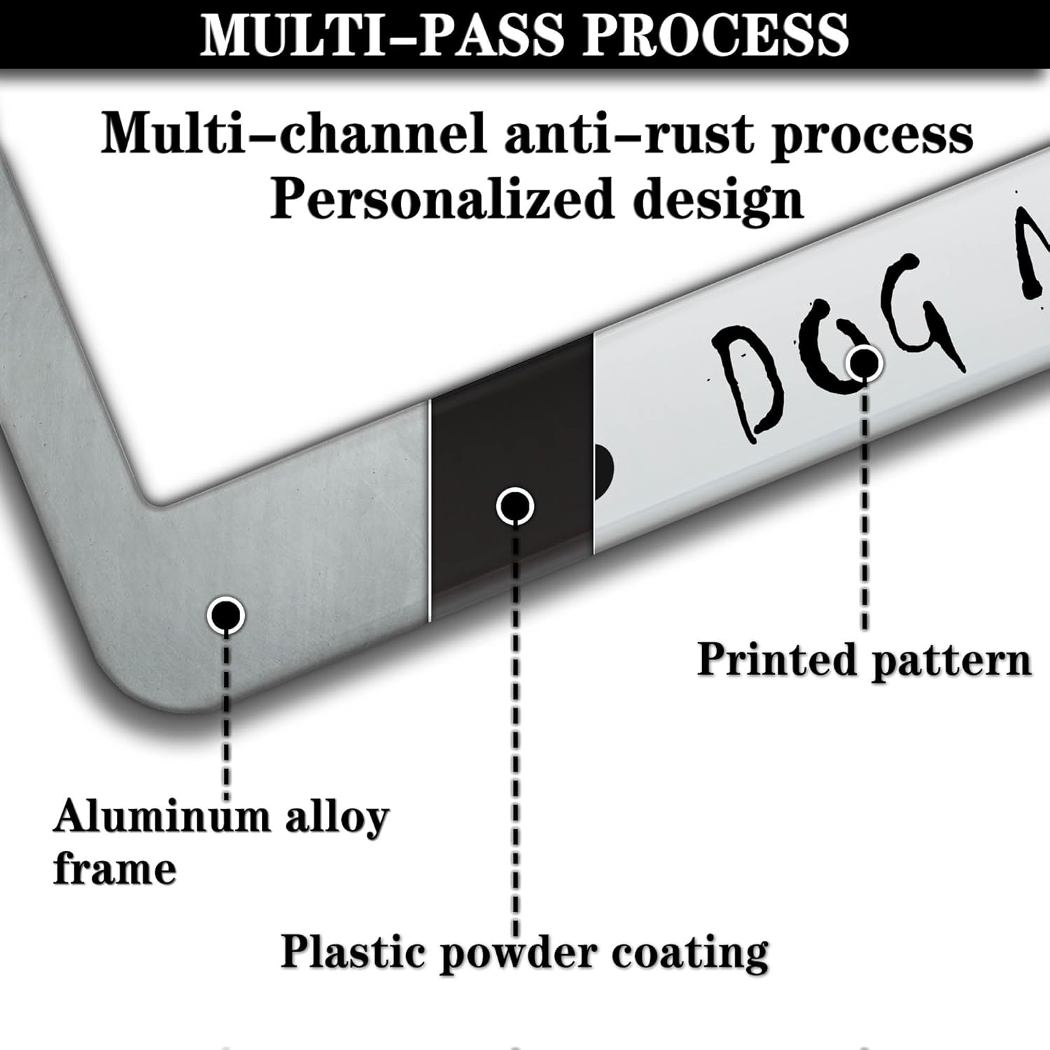 Fun License Plate Frame Cover Black and White License Plate Frames Dog Mom Dog Lover Aluminum Metal Car Accessory 2 Pack with Screw Covers Set