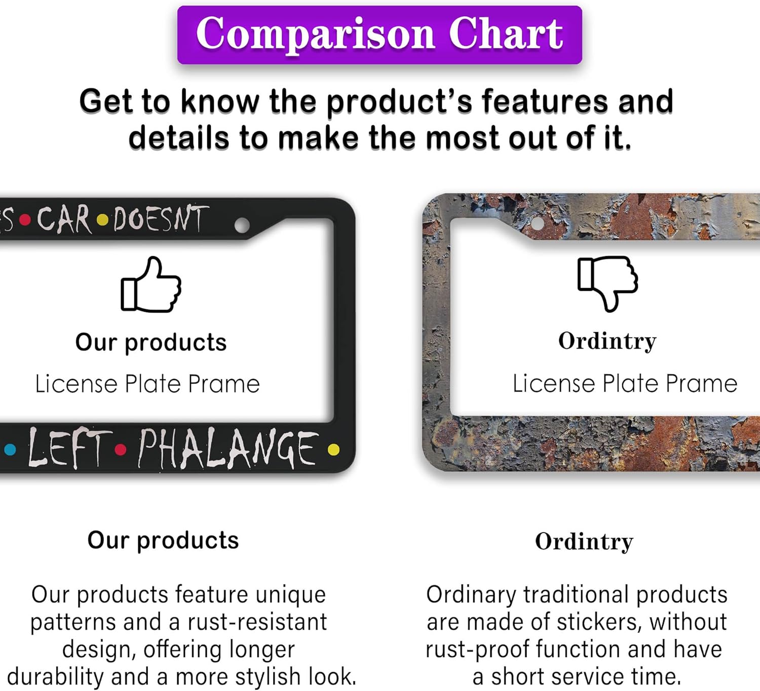 - FUNNY DESIGN: Featuring a unique and customized design, this license plate frame creates an eye-catching and bold statement for your vehicle. Not only does it add a touch of personality to your car, but it also makes for a great holiday gift, souvenir, or decorative piece for family, friends, and colleagues. Elevate your vehicle's style while sharing a laugh!