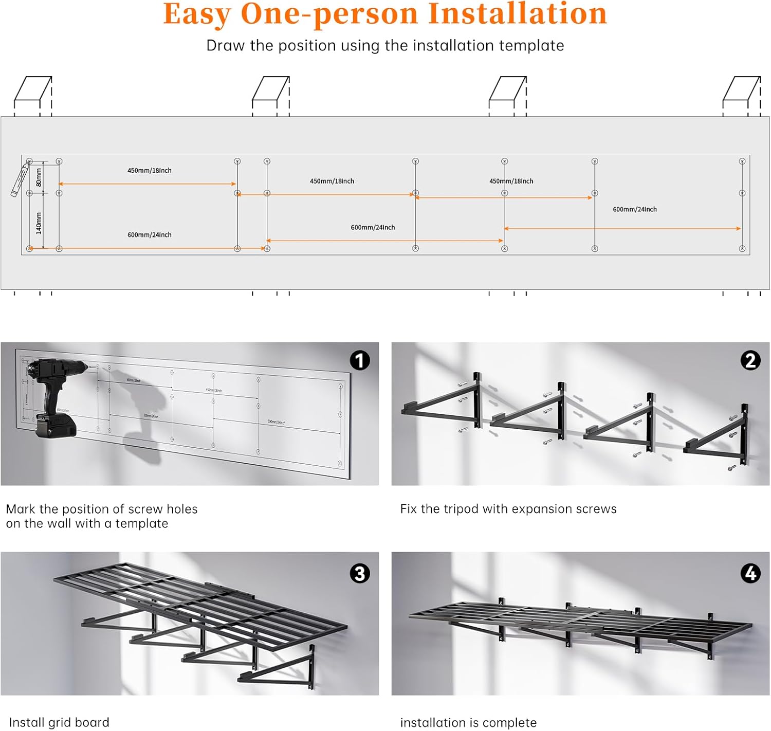 - Easy installation: Garage Wall Shelving mounting installation steps and templates are ready in the package, so one person can install it Quickly