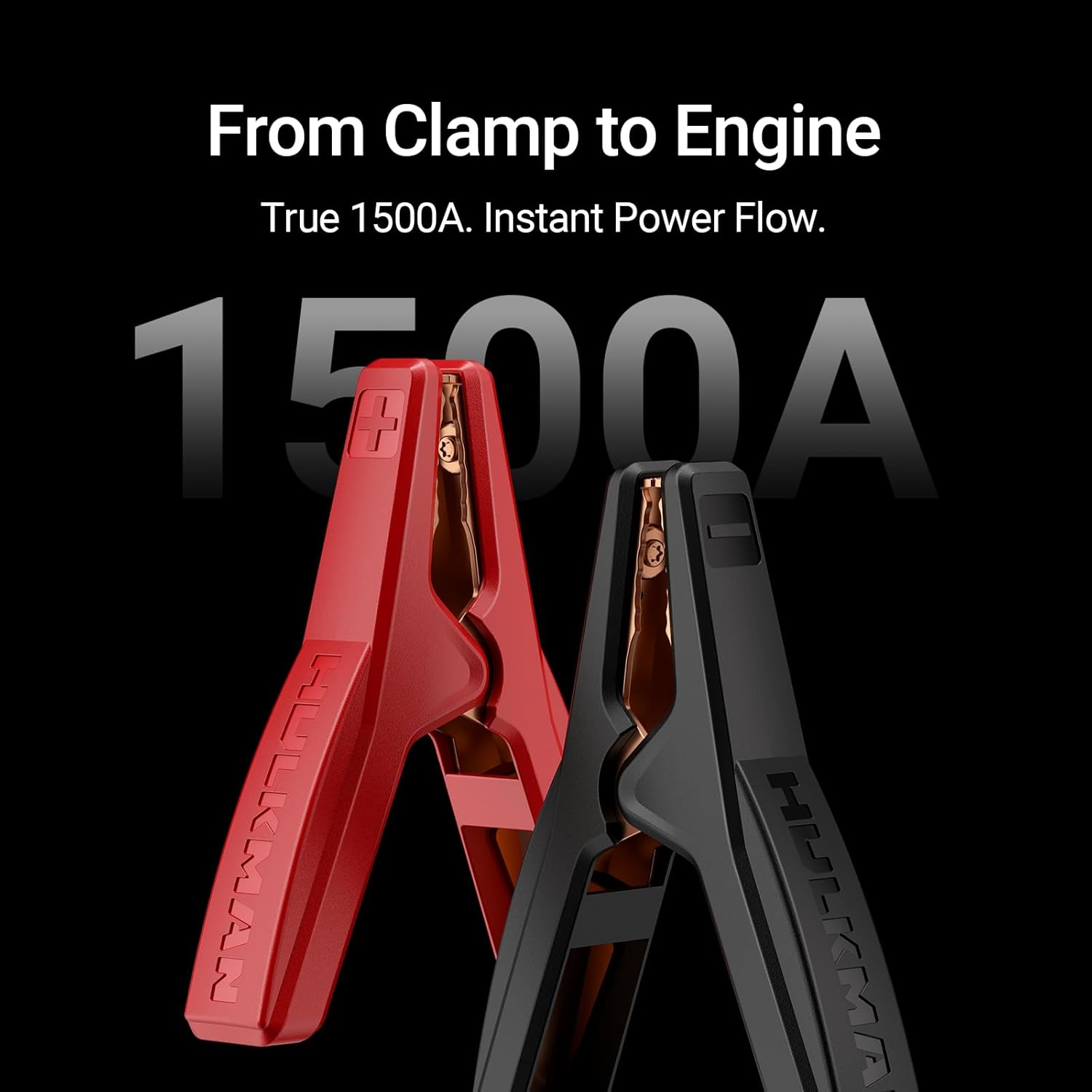 - [Start Dead Batteries] Delivers true 1500A peak current from the clamps—enough to jump start 7.5L Gas/4.5L Diesel engines.