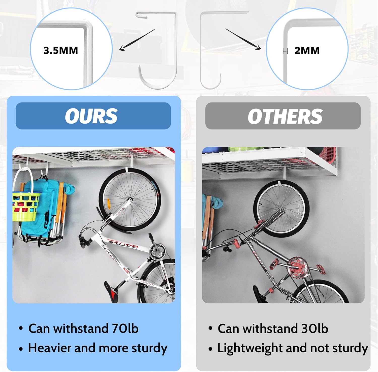 - Alloy Steel: The ceiling hooks are made of solid steel, heavy-duty, with scratch-resistant powder coating, which protects their surfaces from getting scratched or marred and prevents the garage storage hooks from slipping and rusting. Solid steel is not easy to bend, built to withstand temperature changes and moisture
