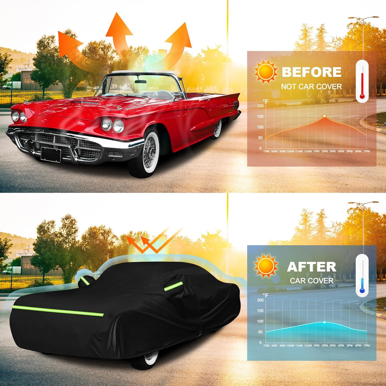 QUNSUNUS Car Cover for Ford Thunderbird 1958-1971/1977-1979 Waterproof All Weather 420D Windproof for Ford Thunderbird Car Cover Hail Protection with Zipper