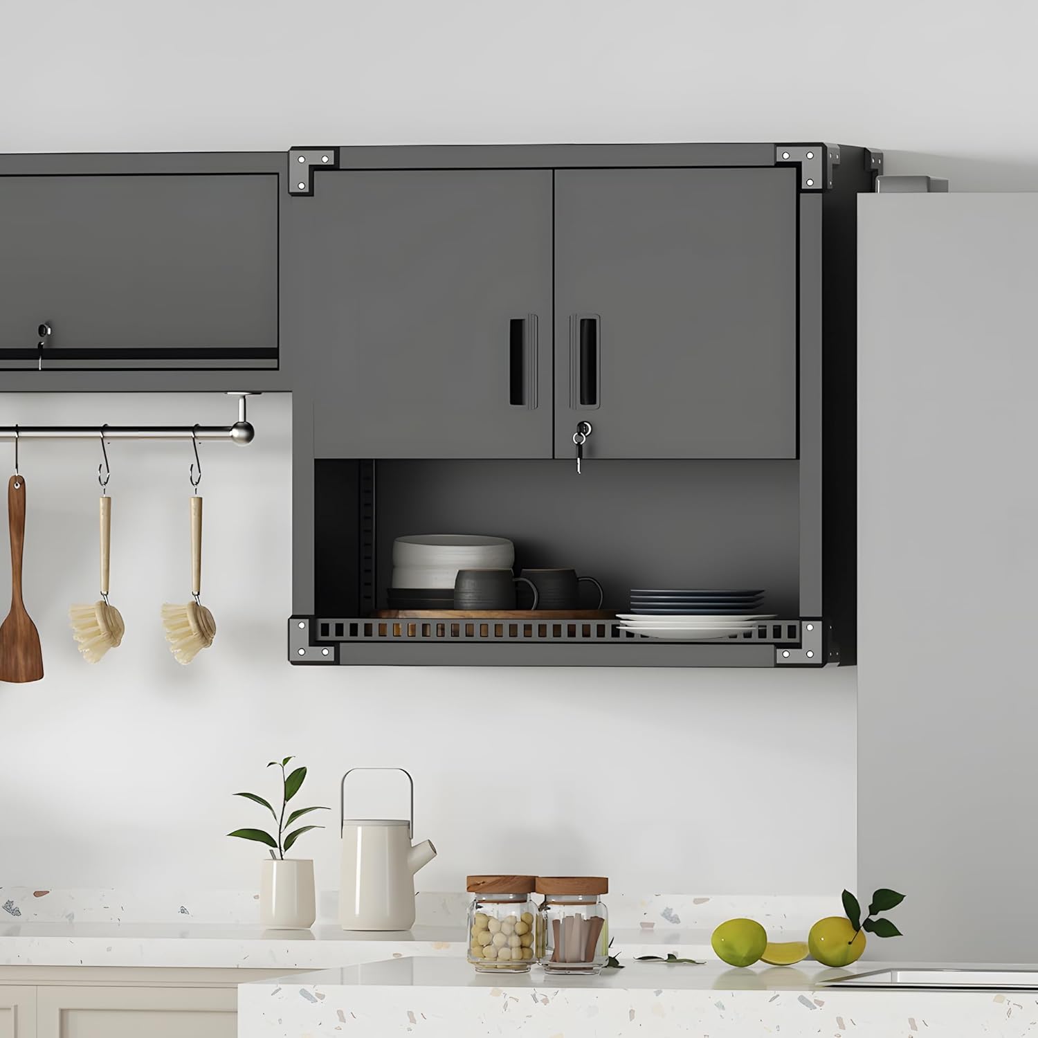Garage Wall Cabinet,Metal Wall Cabinet with Doors and Adjustable Shelves,Steel Utility Wall Mounted Tool Cabinets for Home,Office,Kitchen,Warehouse