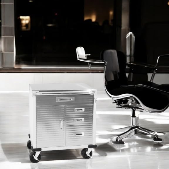Heavy Duty Rolling Storage Cabinet with Wheels and Drawers, Workstation for Garage, Office, Workshop, (Stainless Steel Table top 1 Door, 4 Drawer), Granite