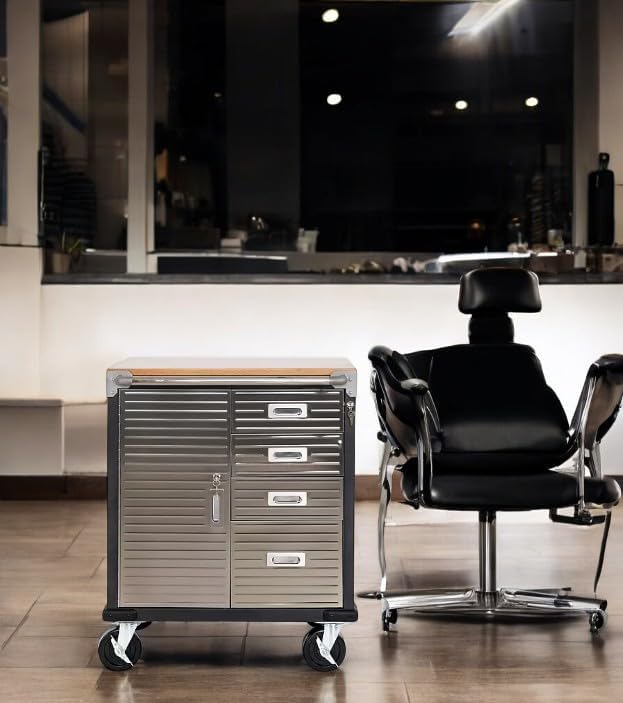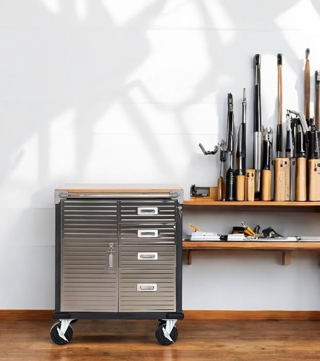 Heavy Duty Rolling Storage Cabinet with Wheels and Drawers, Workstation for Garage, Office, Workshop, 1 Door, 4 Drawer (28" W x 25" D x 34.5" H), Graphite