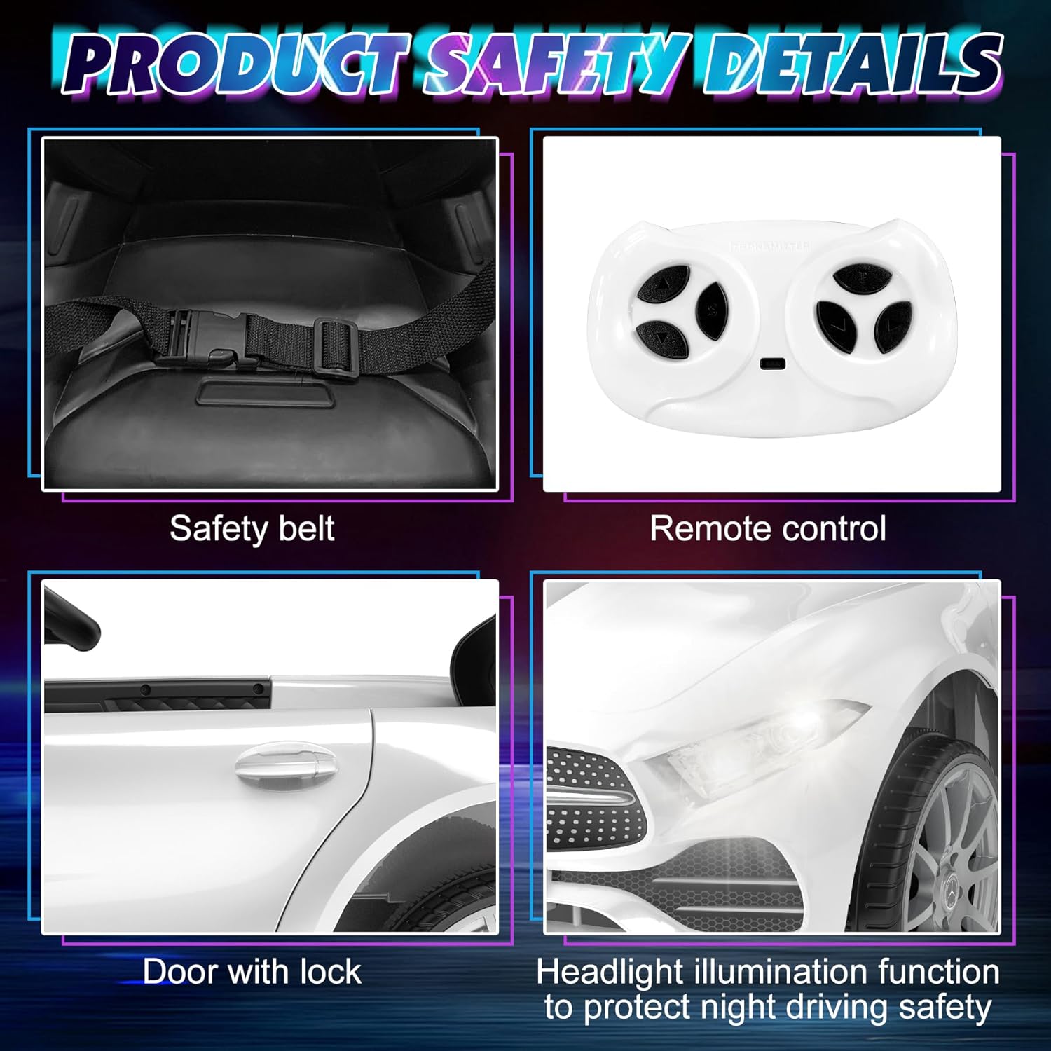 12V Kids Ride On Car with 2.4G Remote Control,Battery Powered Electric Car Ride On Vehicle Double Doors, 5 Point Safety Belt,LED Light (SC-White)