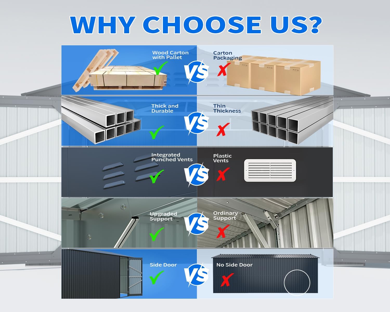 - ๐ฏ100% ๐ช๐๐๐๐๐๐๐ ๐บ๐๐๐๐๐๐๐๐๐๐๐: Rest assured with our 12-month warranty and 30-day return or replacement policy. We prioritize protecting your rights and interests, so please don't hesitate to contact us with any questions about our metal buildings and sheds. We're dedicated to resolving your concerns promptly, typically within 24 hours.