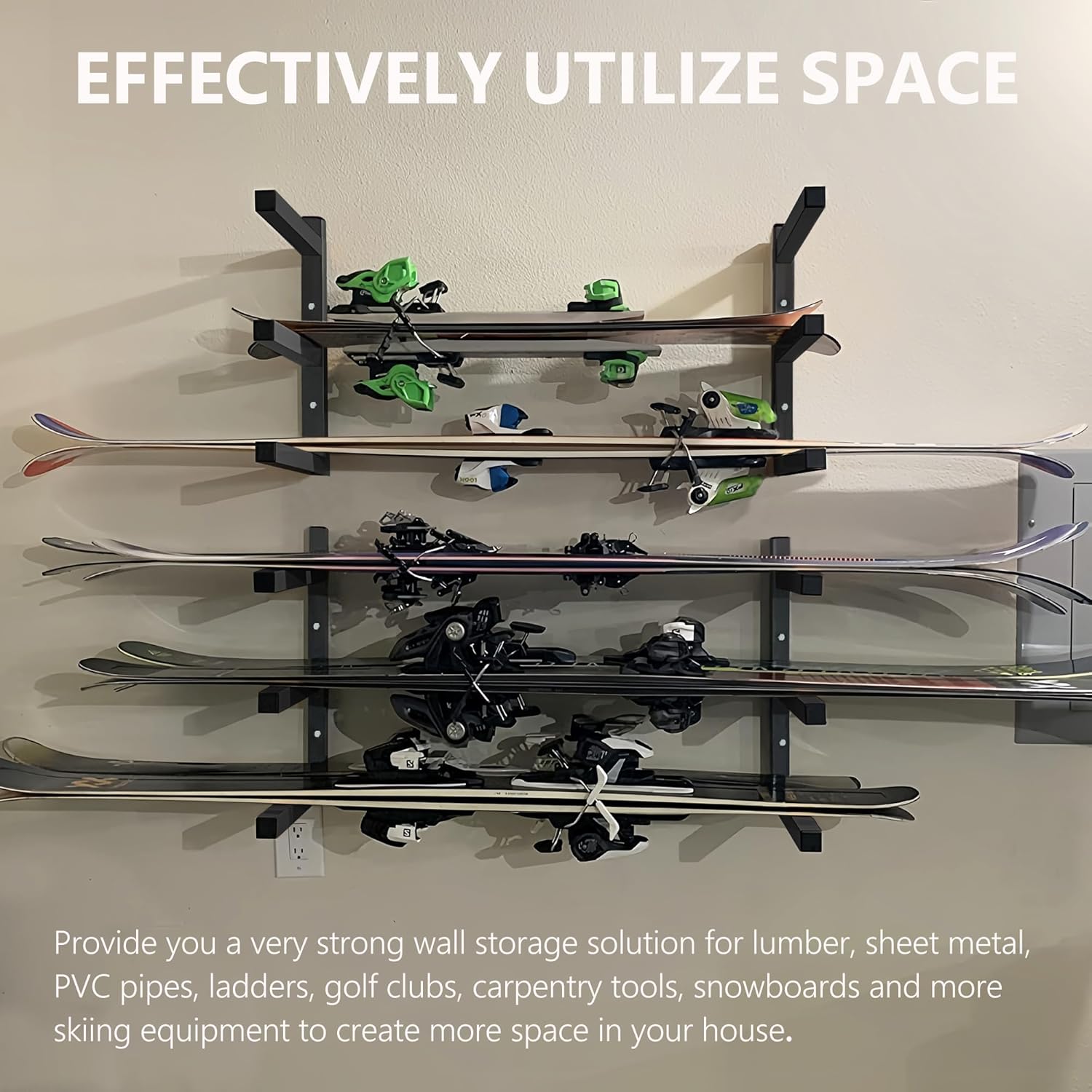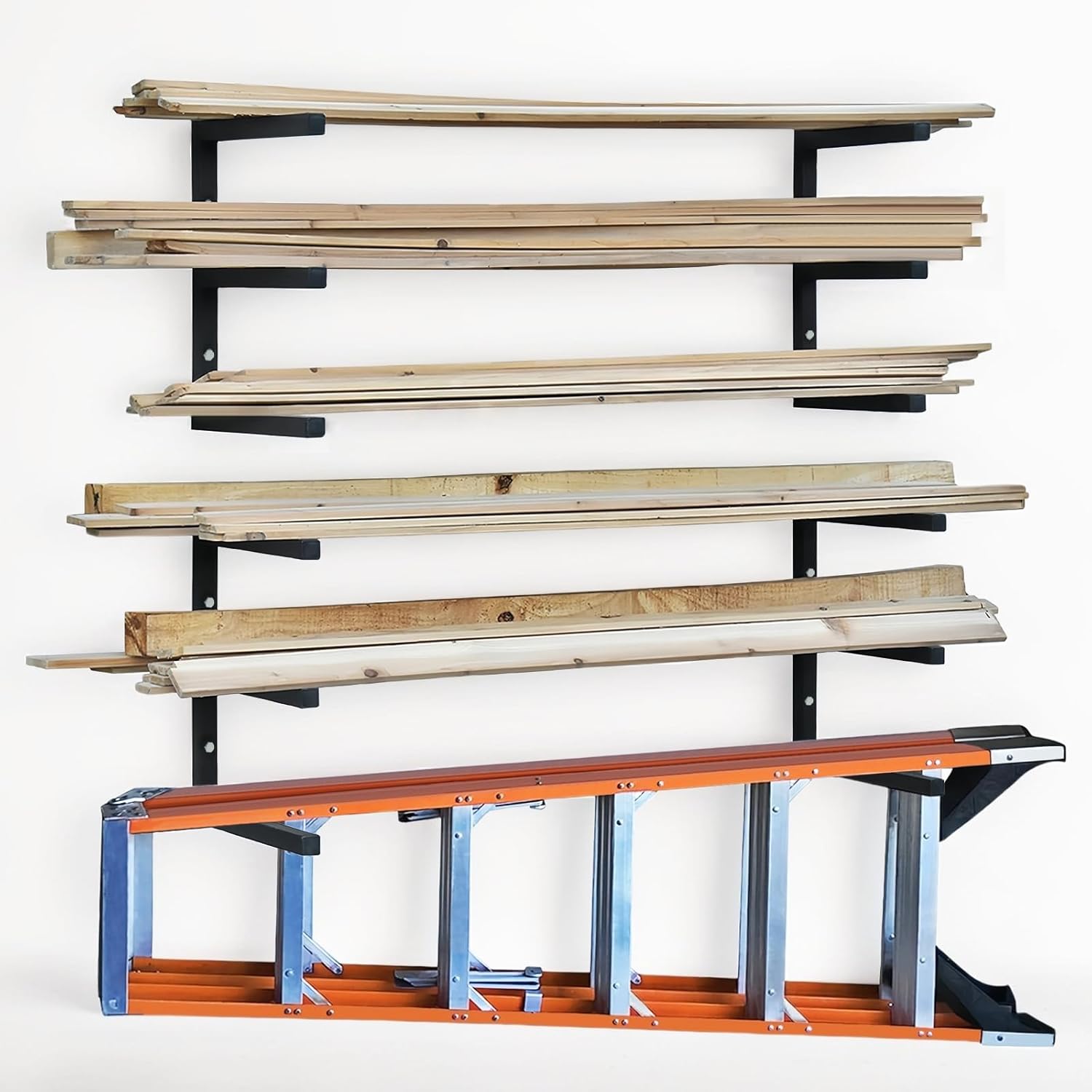 - Perfect for Storage and Effectively Utilize Space: Store all your building supplies without taking up too much space, preventing construction materials from spilling on the floor and keeping your garage, basement, shed or outdoor workspace well-organized for easy cleaning and maximize conveniences. Our wood organizer is a very strong wall storage solution for lumber, firewood, gutters, sheet metal, PVC, pipes, ladders, skis, golf clubs, construction tools, old rugs, bicycles, tires, carpentry tools, snowboards and more skiing equipment to create more space in your house or even outdoor workspace