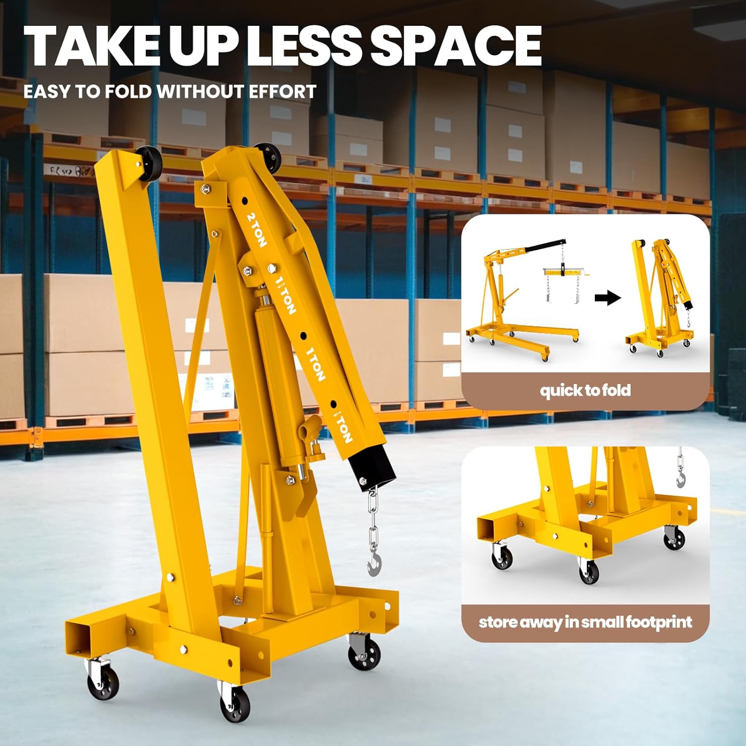 2 Ton Engine Hoist with Leveler 4409 LBS Folding Cherry Picker Engine Hoist, Heavy Duty Hydraulic Engine Crane with 8 Ton Hydraulic Pump and 6 Casters, Engine Hoist Lever for Engine Lifting Loading