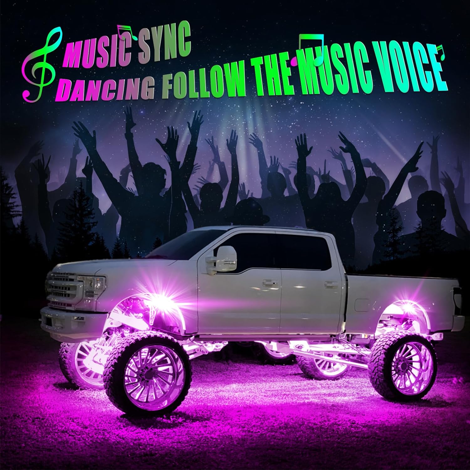 - ๐ ๐๐๐ฆ๐จ๐ญ๐ ๐๐จ๐ง๐ญ๐ซ๐จ๐ฅ ๐๐ฉ๐ญ๐ข๐จ๐ง๐ฌ: APP and 4-button remote, allowing for more flexible operation.Wheel well lights offers millions of different colors with brightness adjustment, 23 modes of flashing & strobing with speed adjustment, sync with music rhythm, voice responsive, and timing function for your choice,There are also custom colors and modes available
