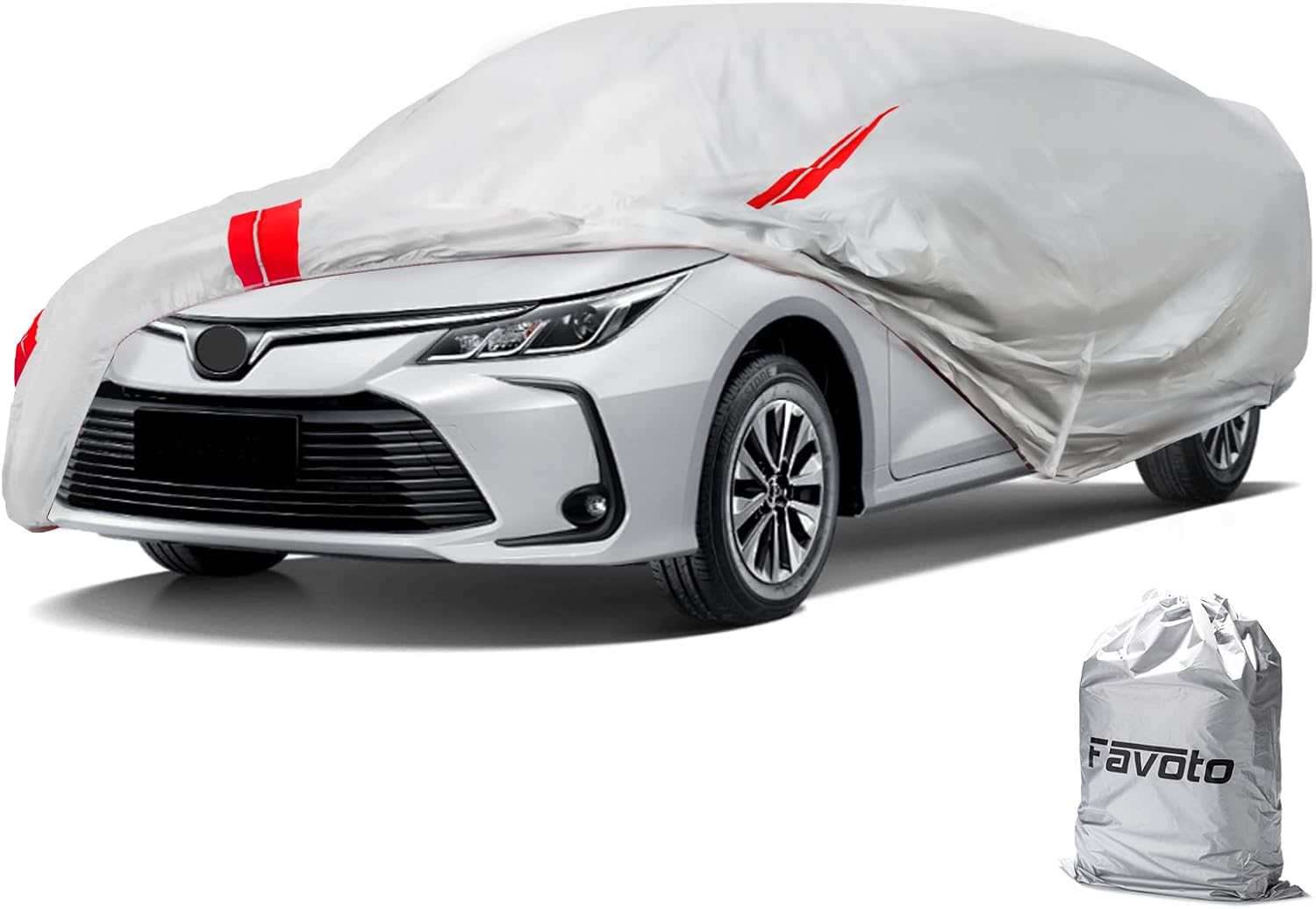 Favoto Sedan Car Cover Waterproof - Custom Fit for Toyota Corolla (1996-2024) All Weather for Automobiles Outdoor with Reflective Stripe Snow Sun Dust UV Protection Full Exterior Cover