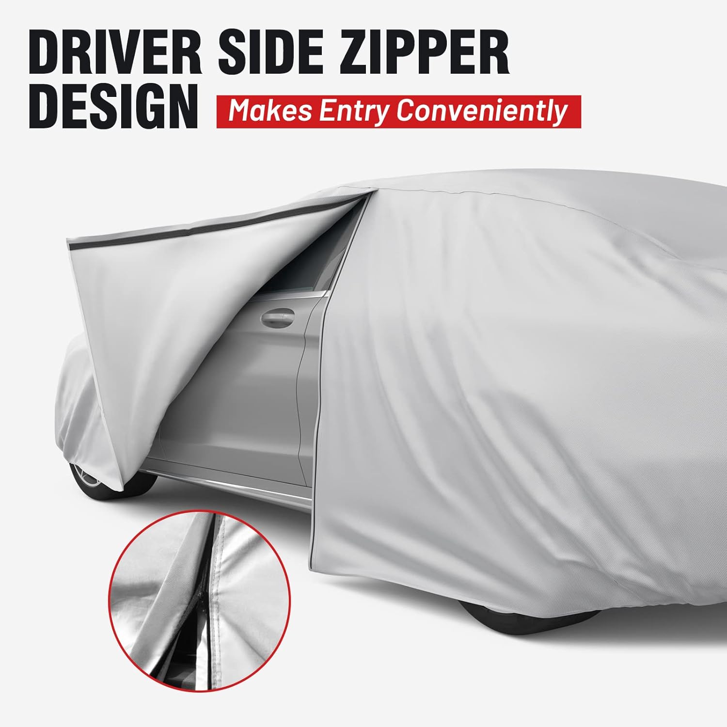 - ăDriver Side Zipper Designă- On the driver side, there is a zipper design on the car cover for easy entry. It is convenient for you to get into the car just in case it is already covered. Easy in and out without taking off the cover.