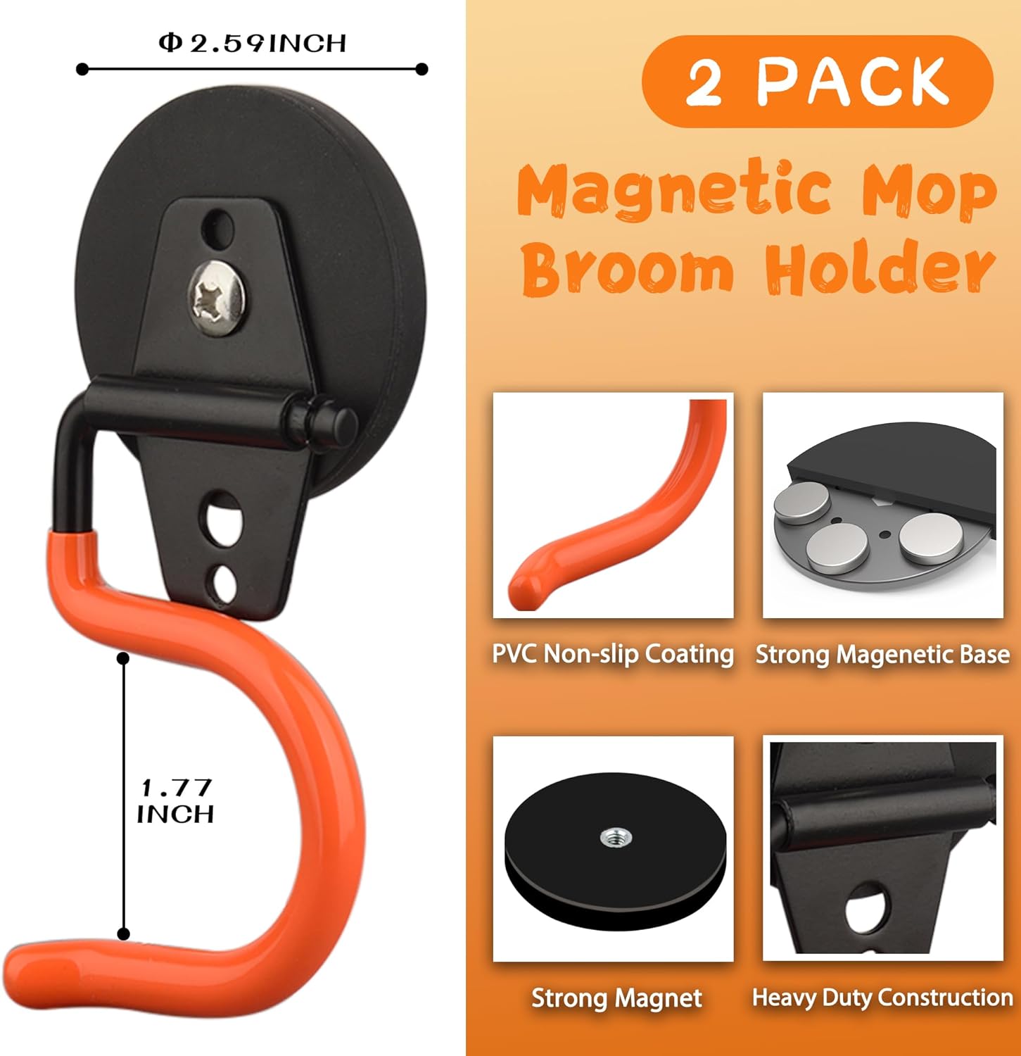 - [Pakage List]: 2 pcs Magnetic Mop Broom Holder. lt's a great gift for fathers, brothers, husbands or housewarming for friends! This hook is the perfect solution to reduce clutter, increase space, keep items in order, and quickly find what you need