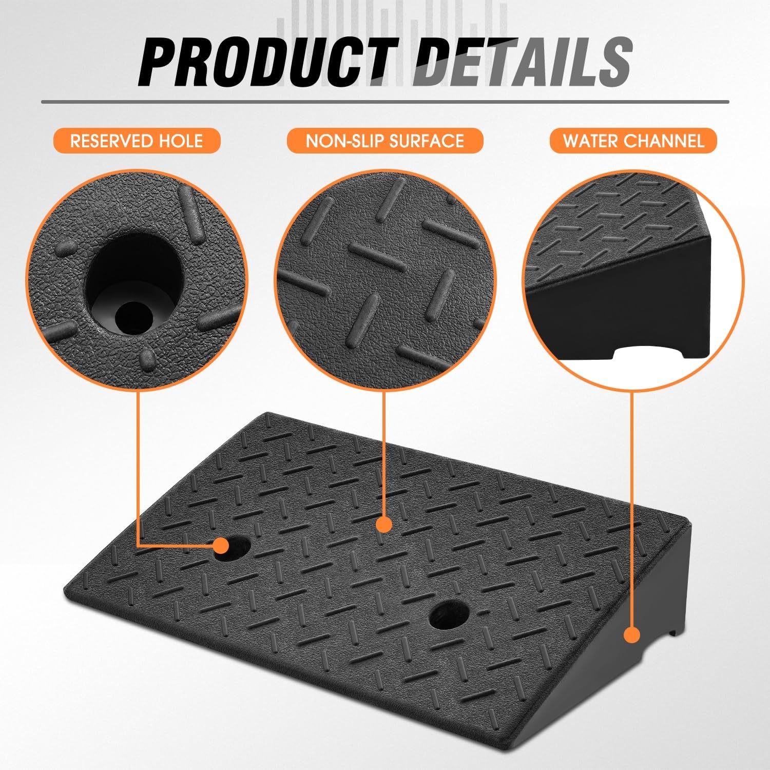- EASY INSTALLATION - DNA Curb Ramp adopts an integrated design and Equipped with 1 x 2pre-drilled mounting holes that can be connected to the ground with screws