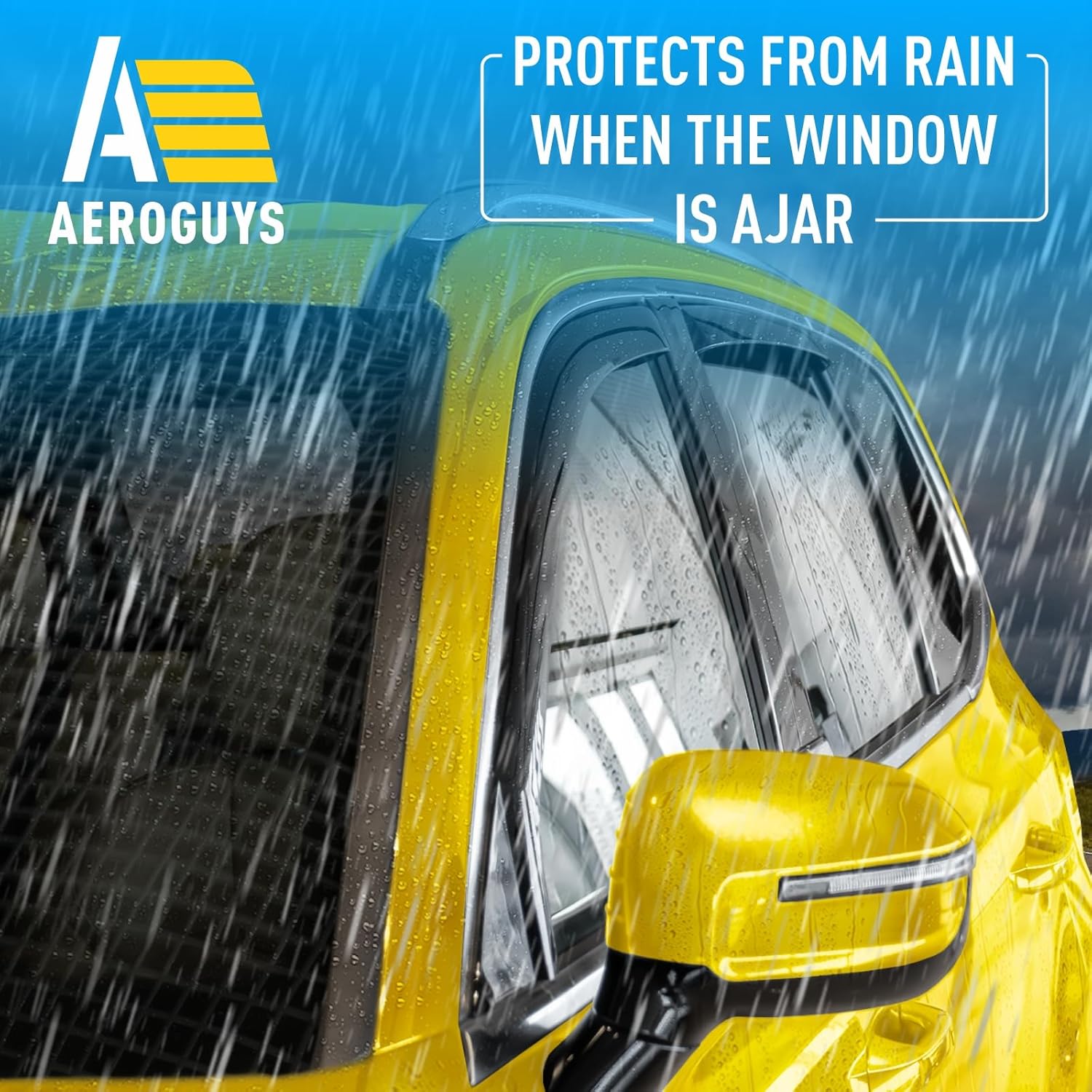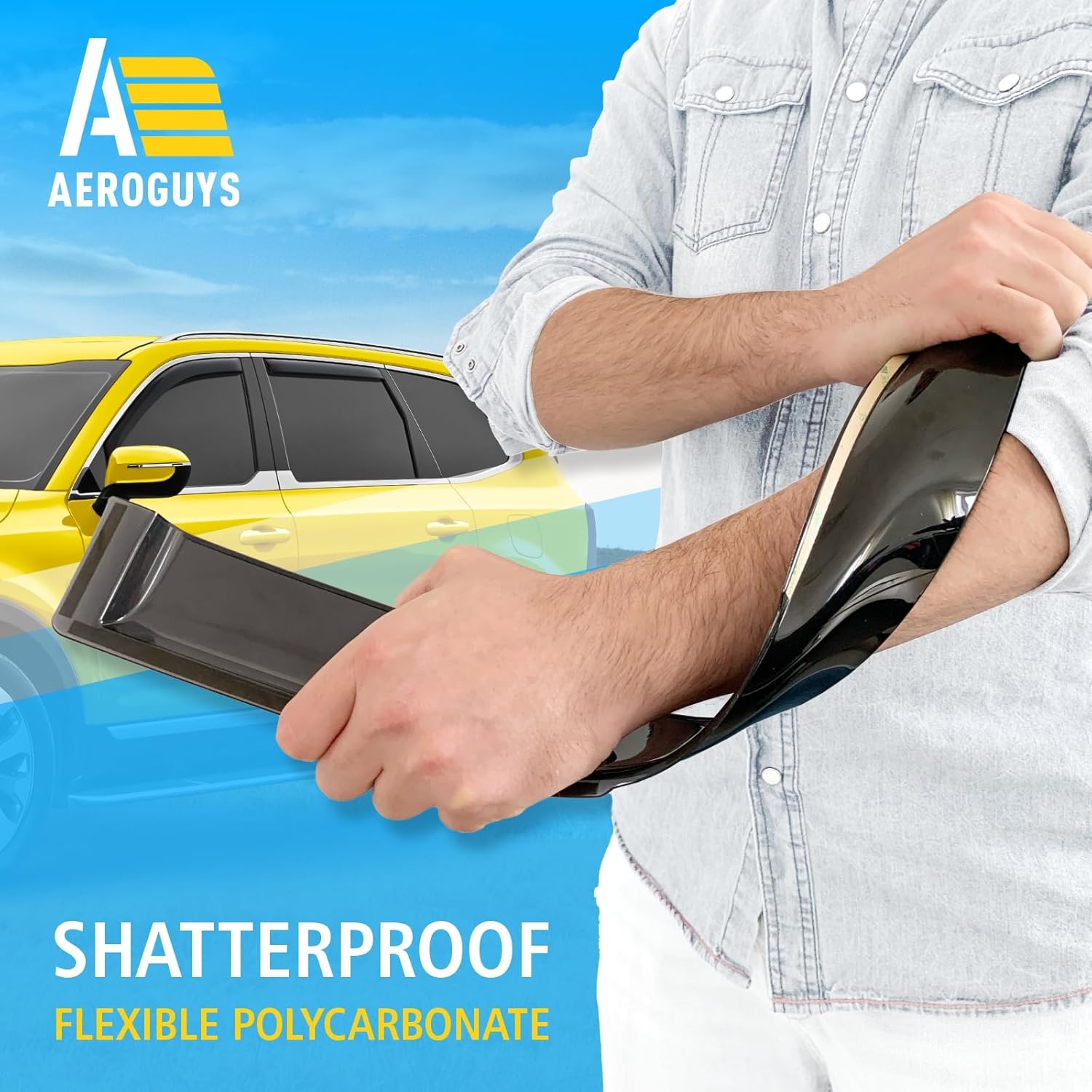 - Incredibly Durable AEROGUYS Auto Window Deflectors β They are made with strong and tough polycarbonate which is clear and scratch-resistant. They also provide UV protection making your ride more comfortable under all weather conditions.