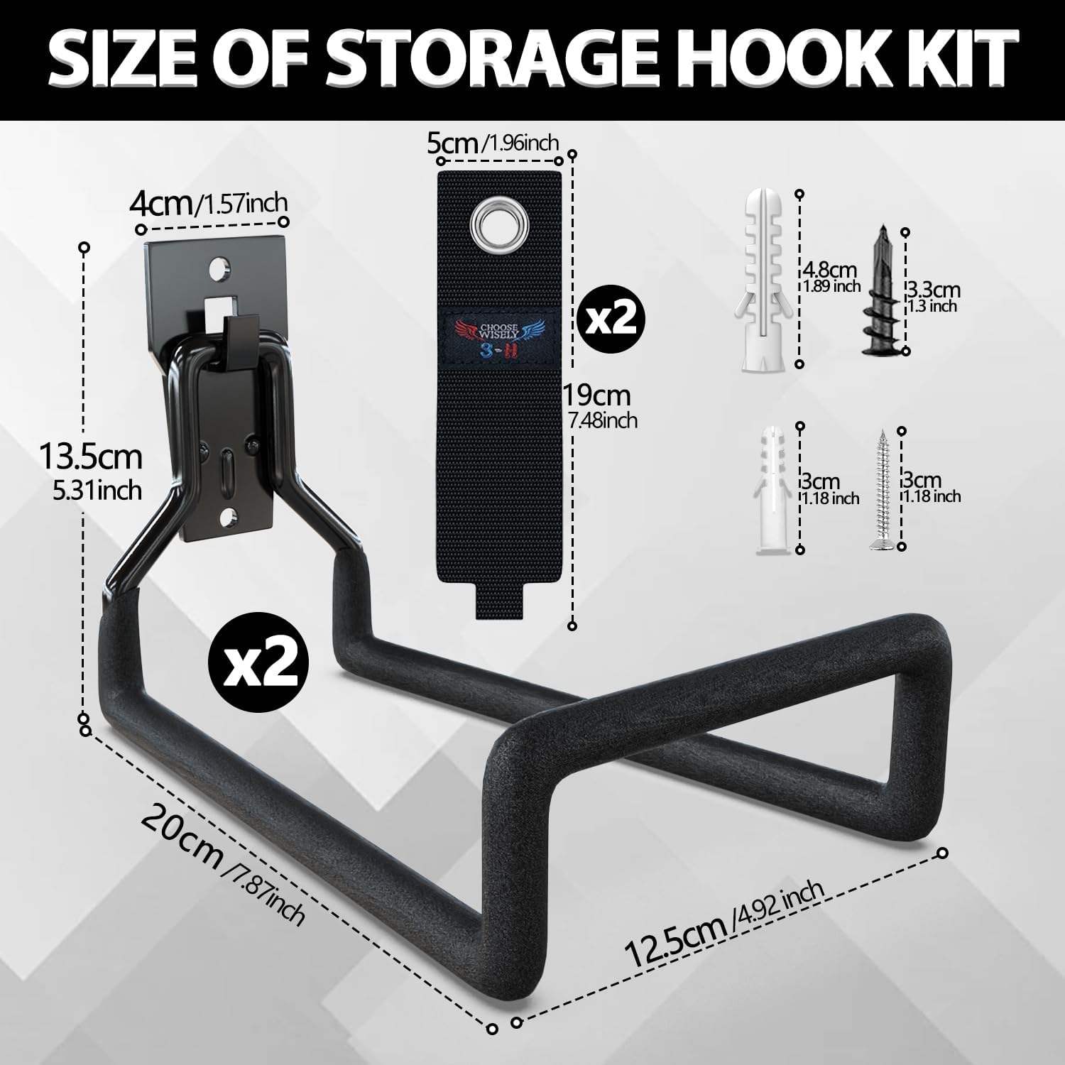 3-H Garden Hose Holder Wall Mount 2 Pack,Solid Steel Hose Hanger wih Extension Strap,Water Hose Holders for Outside to Hang Outdoor Air Hose,Ropes,Pipes,Power Tools,Ladders,Bikes,Bulk Items