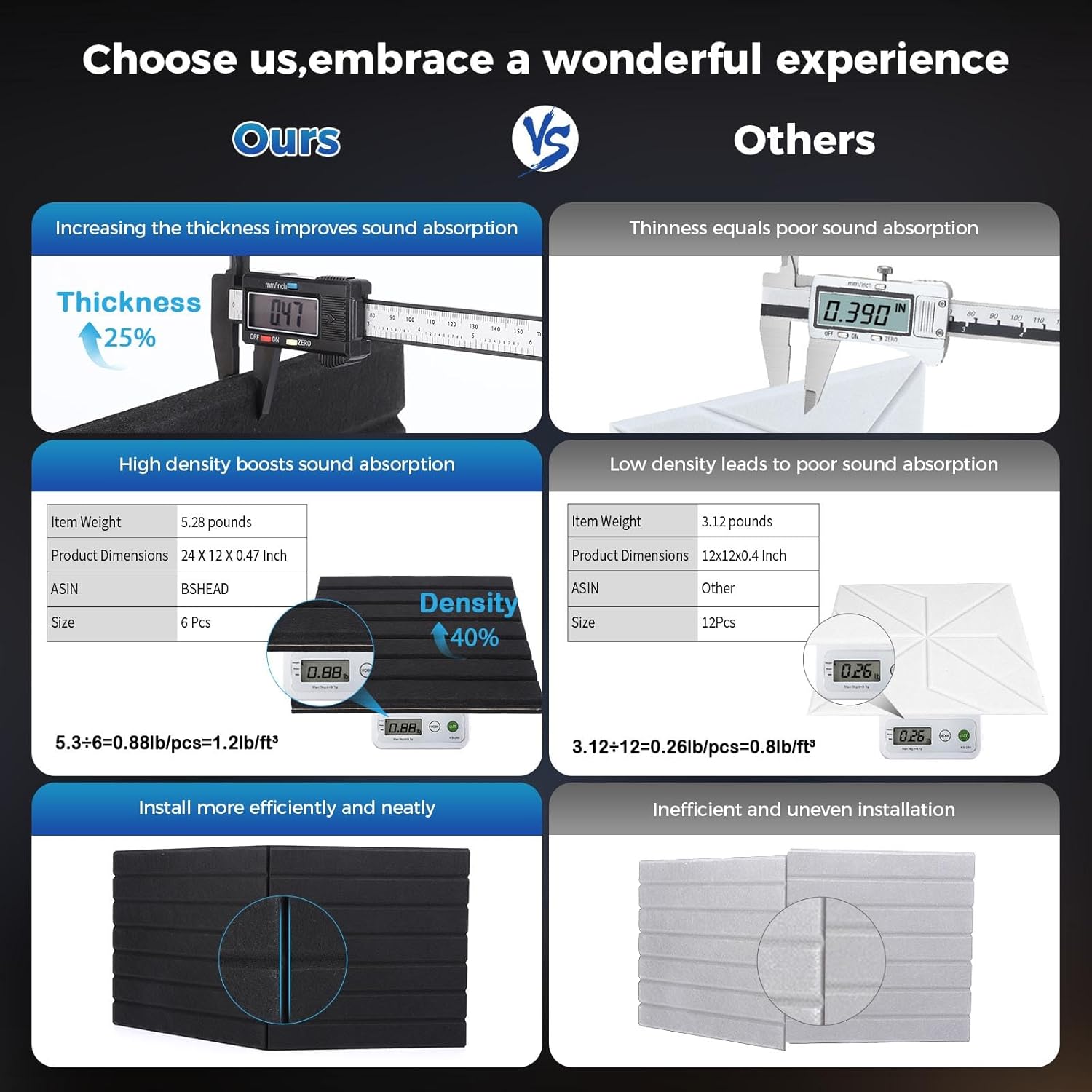 • 【Excellent Quality】: This sound panels is made of high-quality 100% polyester, odorless and flame retardant. There are no risks associated with spending long periods of time in a room with soundproof wall panels. And compared with traditional sound panels noise reducing for walls, our products have higher thickness (25% thicker) and density (35% denser)larger in size(200% area),which means better durability and sound absorption