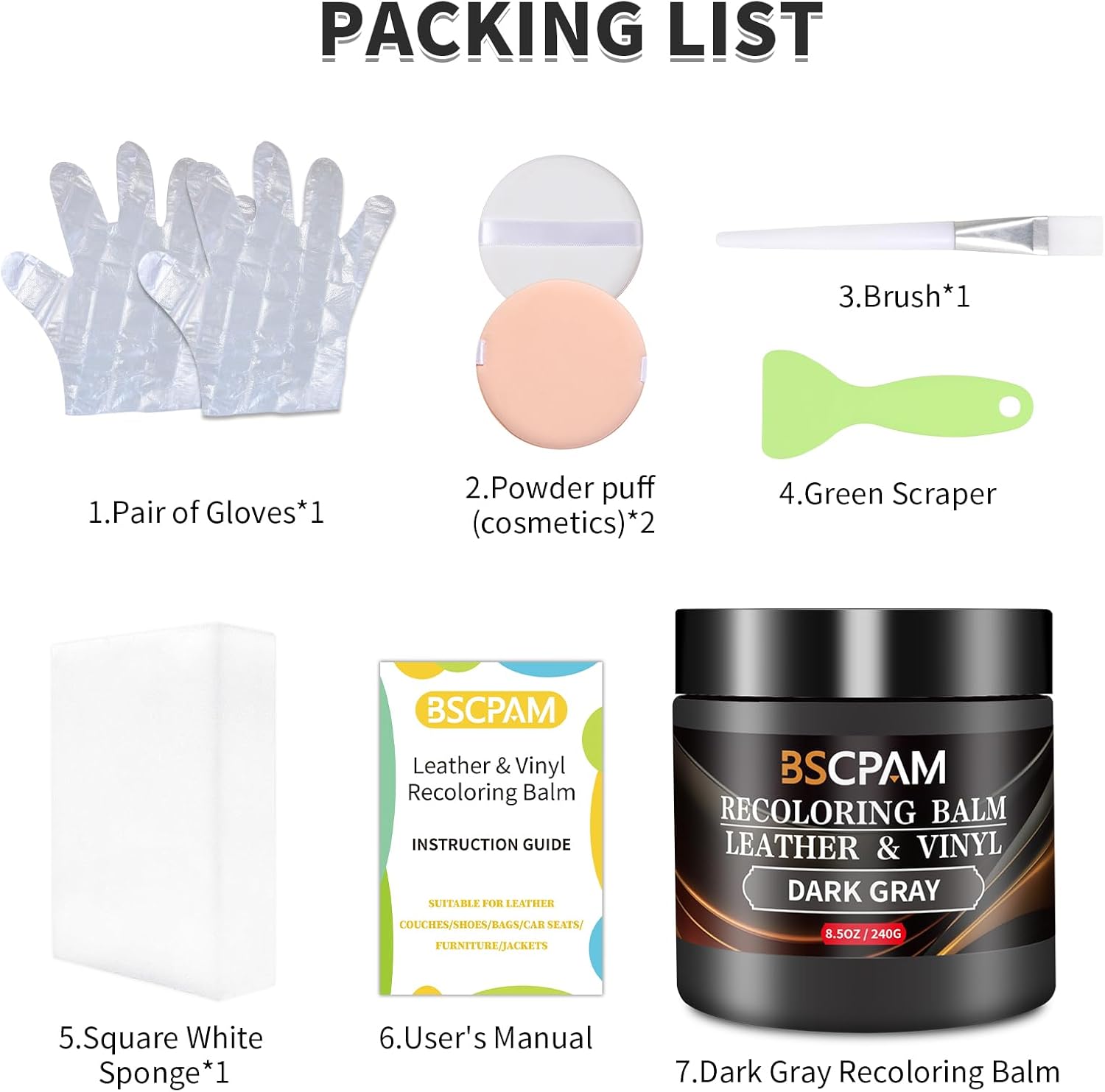 - Professional Leather Recoloring Balm: BSCPAM advanced leather repair gel is cream utilizes an advanced formula,effectively repairs scratches, cracks, and wear on the surface of leather, restoring its original appearance.Its special formula can penetrate the leather fibers, effectively repairing surface scratches, cracks, and wear while providing an additional protective layer to prevent future damage, helping to extend the lifespan of leather items
