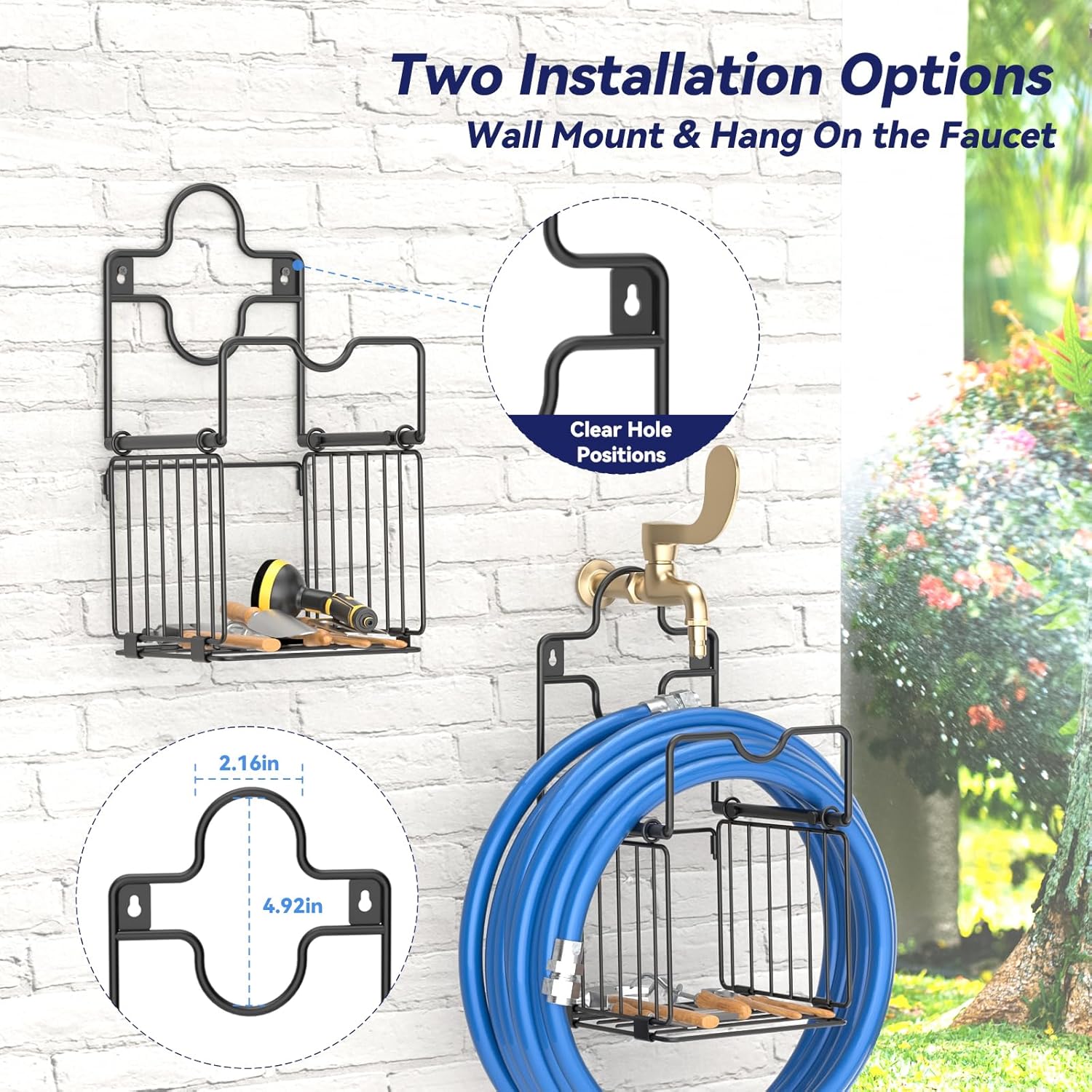- SPACE-SAVING HOSE HANGER - No more tangled hoses or scattered tools—the hose holders for outside will maximize your outdoor space effortlessly!