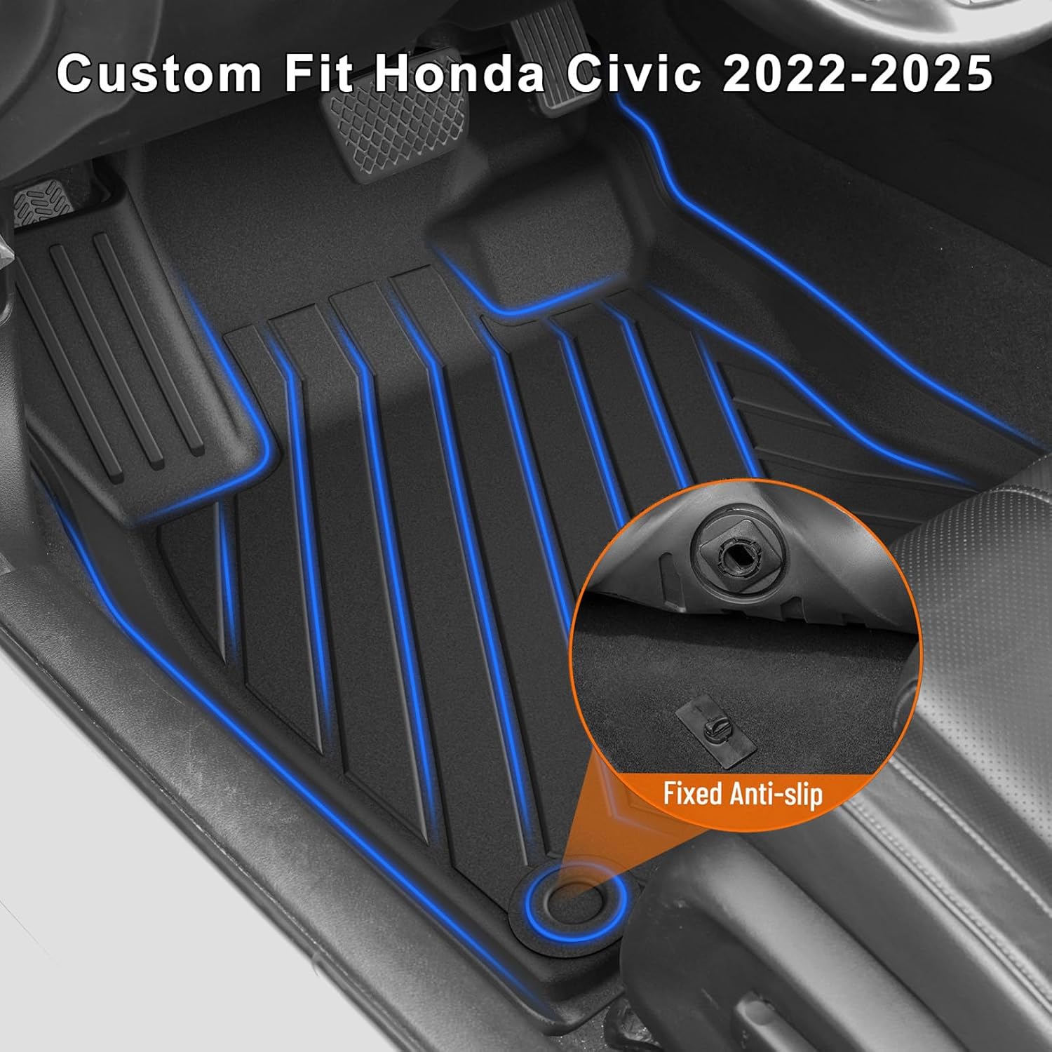 - 【Non-Slip & Durable】The 2025 2024 2023 2022 Honda Civic Sedan car carpets liner are made of upgrade premium TPE material that is ensuring 100% safety even in extreme hot weather, non-toxic and tasteless. The high tensity TPE material are extremely elastic and wearability, which can remains flexible in even the harshest of cold weather.