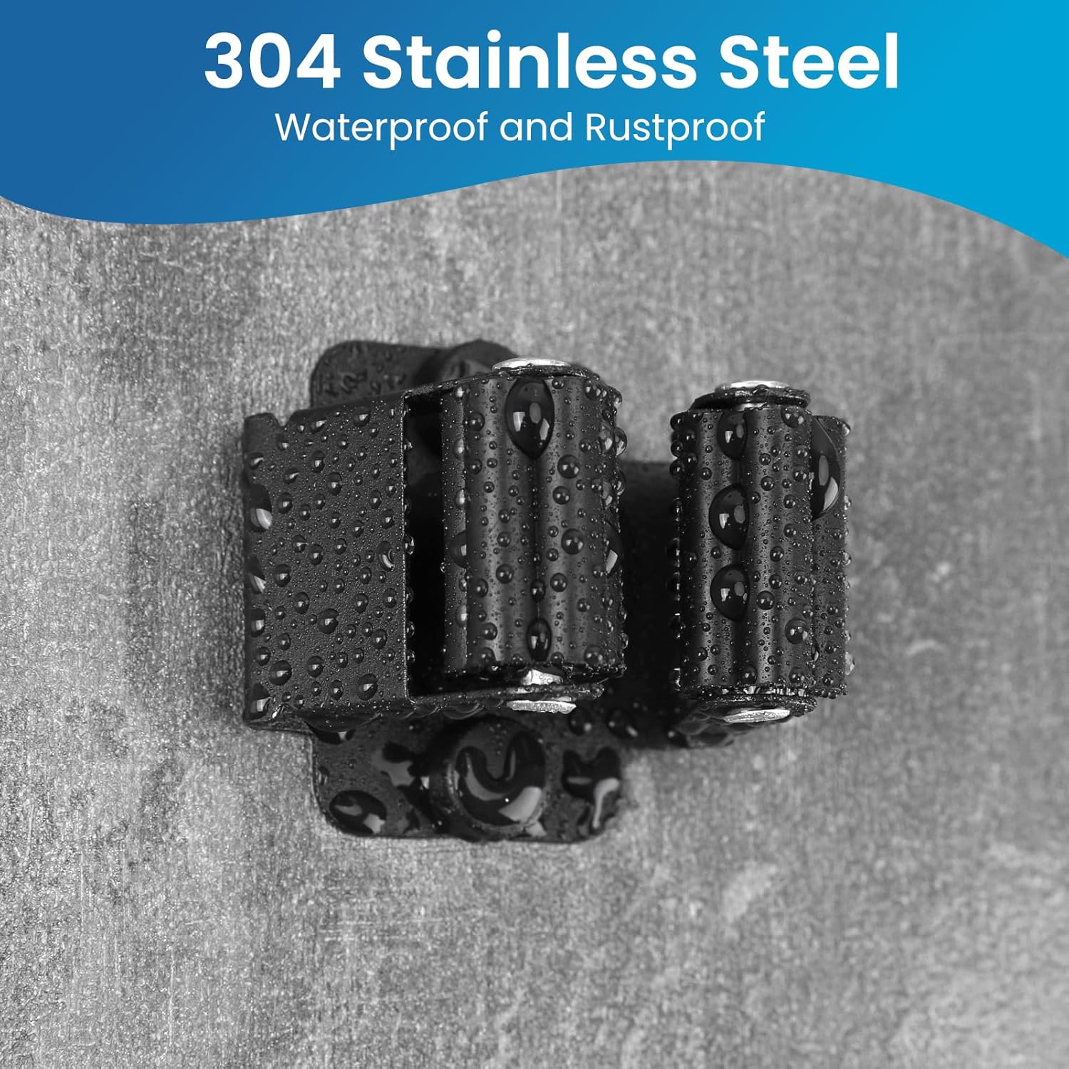 Broom Holder Wall Mount, 4PCS Broom Hanger Wall Mount, Stainless Steel Heavy Duty Mop Holder Broom Mop Hanger Wall with Screws, Garden Outdoor Tool Organizer Rack Broom Hanger (Black)