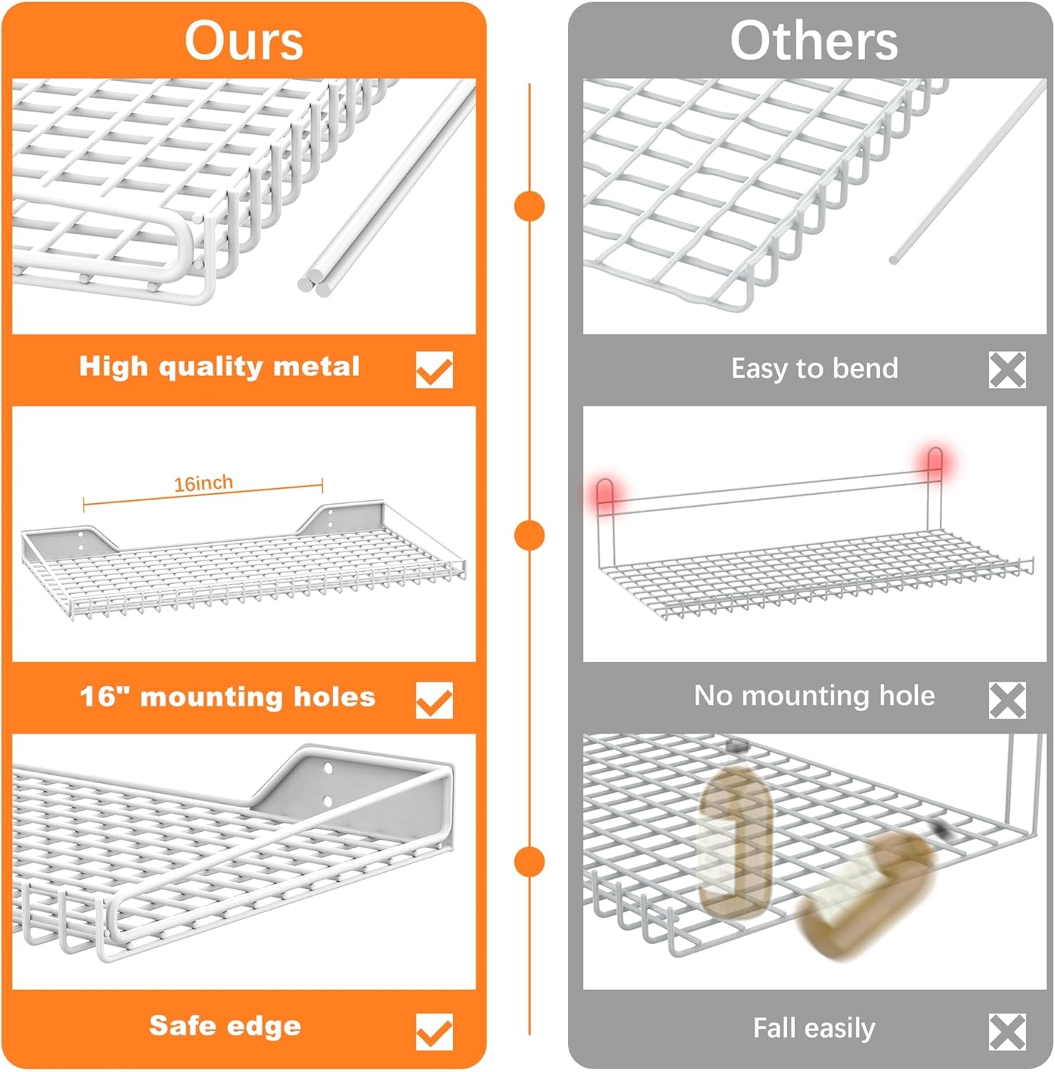- Package Includes: 4 durable wall shelves in 3 versatile sizes, providing flexible storage solutions for laundry room, garage, closet. If you're not satisfied, we're dedicated to addressing your needs and ensuring your satisfaction