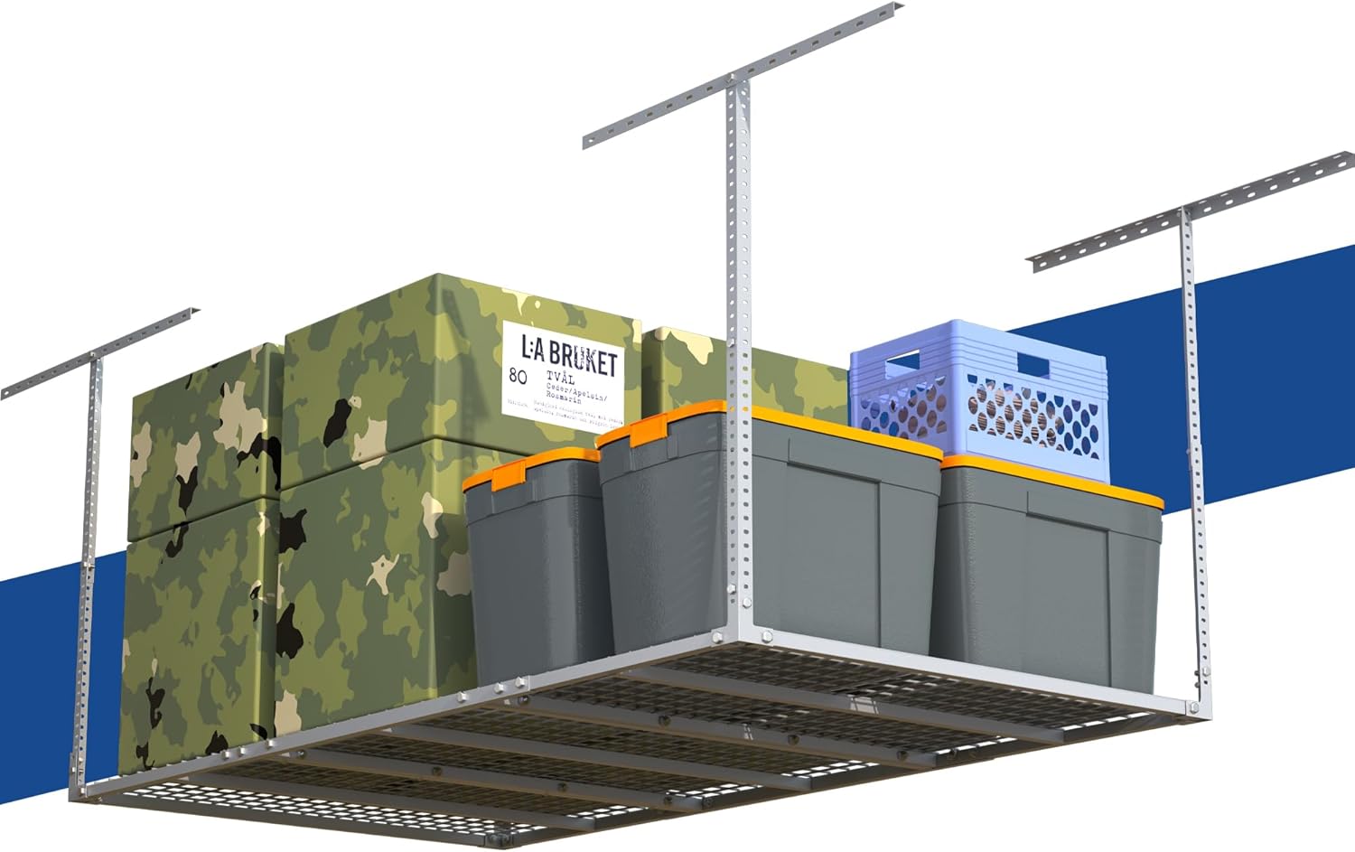 - EASY TO ASSEMBLY: Please refer to the instruction manual and install it step by step. According to the spatial characteristics of your garage, freely adjust the direction and height. Note: This ceiling storage rack is suitable for ceilings with joist spacing less than 24 inches. If the joist spacing is greater than 24 inches, it is only suitable for ceiling spacing of 48 inches.
