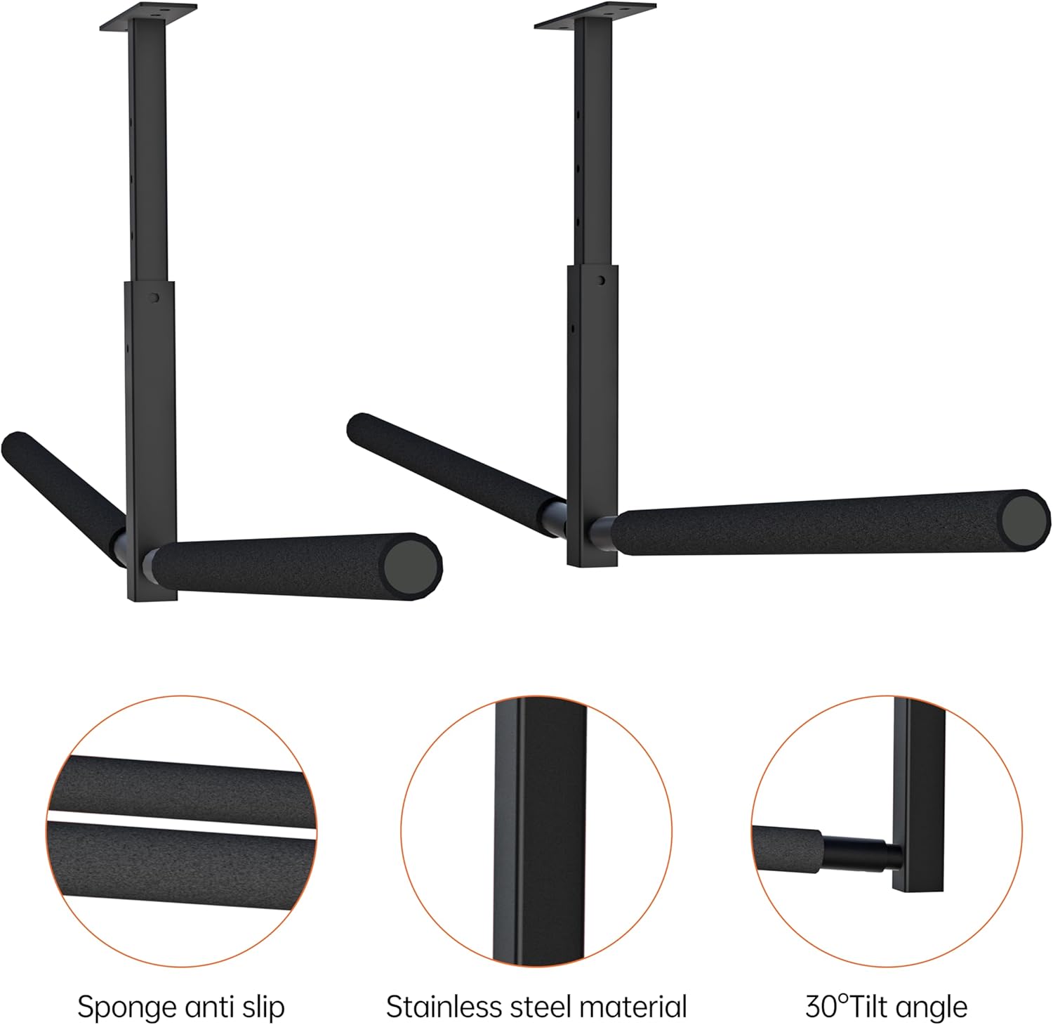 - EFFICIENT LADDER CEILING INSTALLATION: Designed for optimal ladder ceiling storage, TRUSOON double ladder ceiling racks maximize garage space. This innovative solution frees up valuable garage space by safely suspending ladders from the ceiling